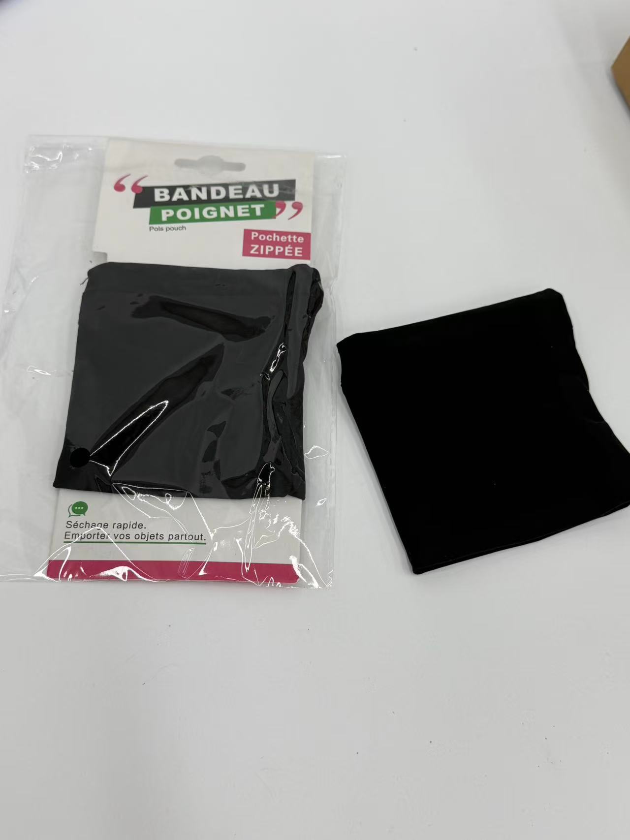 手腕包面料:锦纶消光布,85锦纶15氨纶 拉链齿的材质是 聚酯单丝,PET