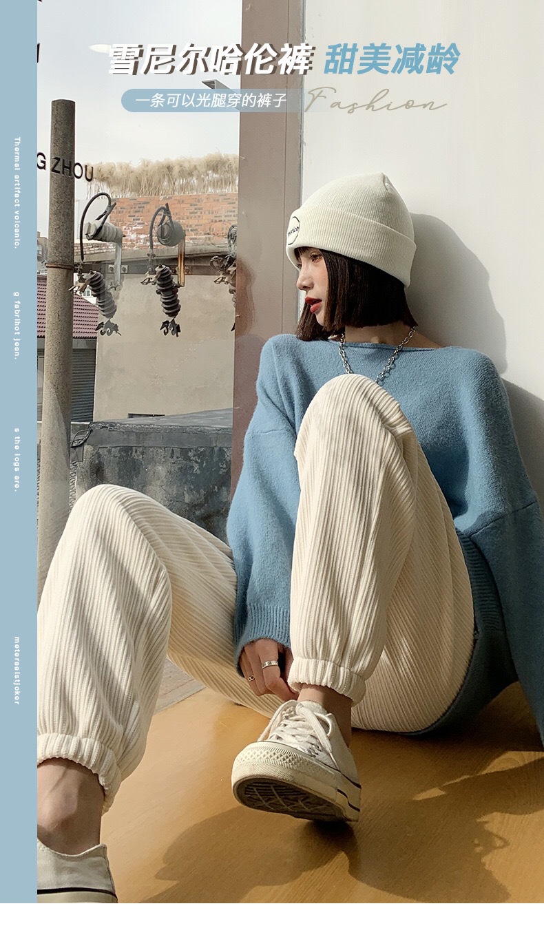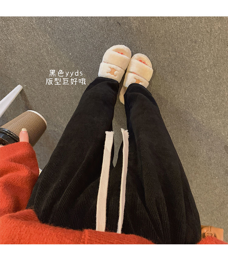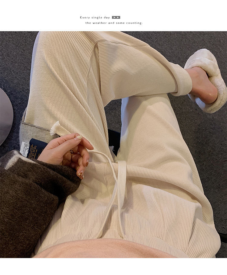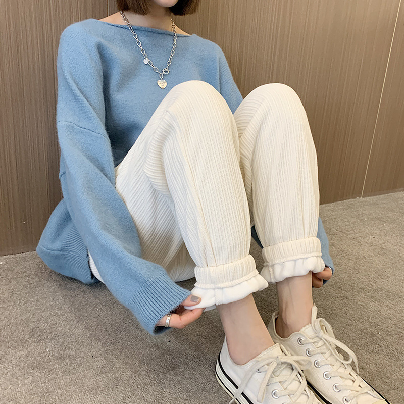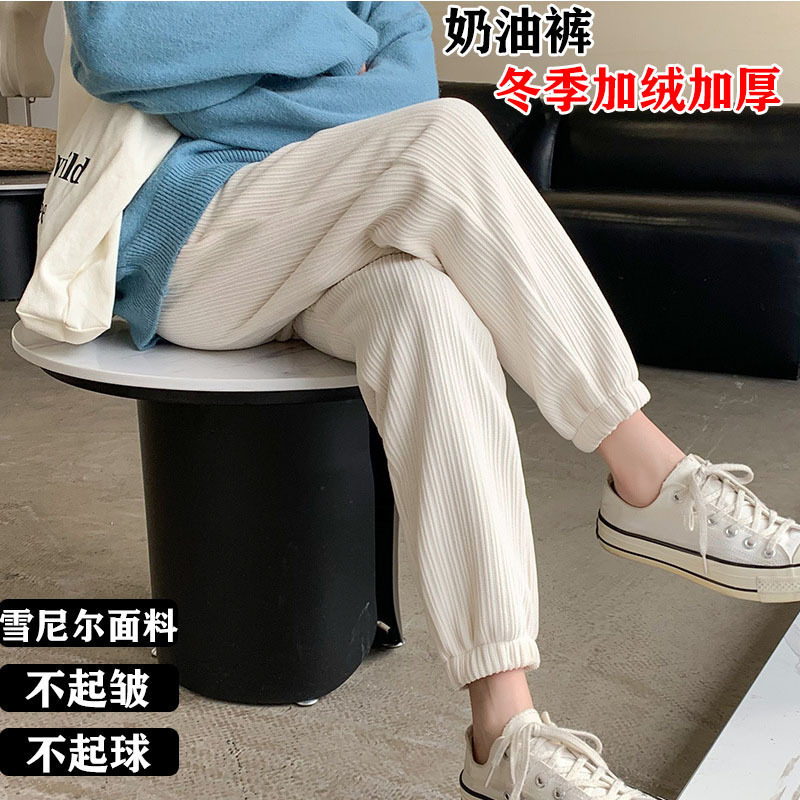 Осенне-зимние кремовые брюки из синели, женские утолщенные пучки ног, широкие брюки с высокой талией, тонкие повседневные спортивные брюки