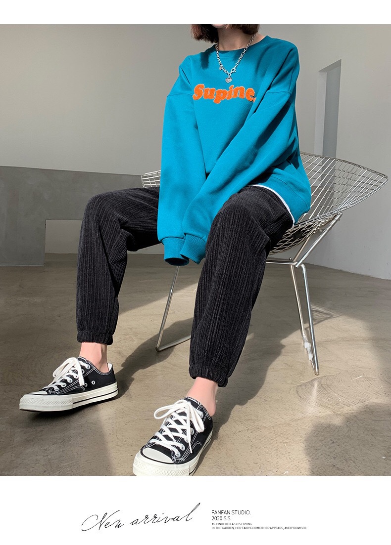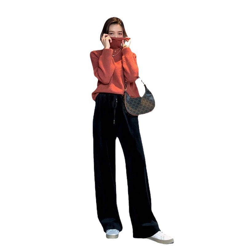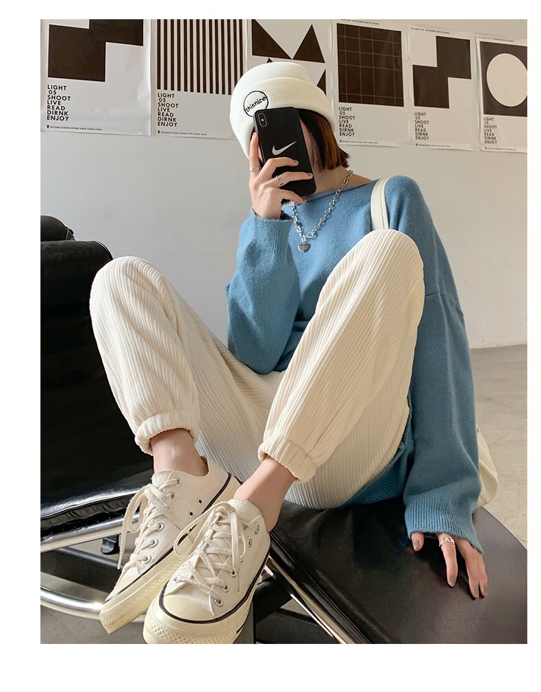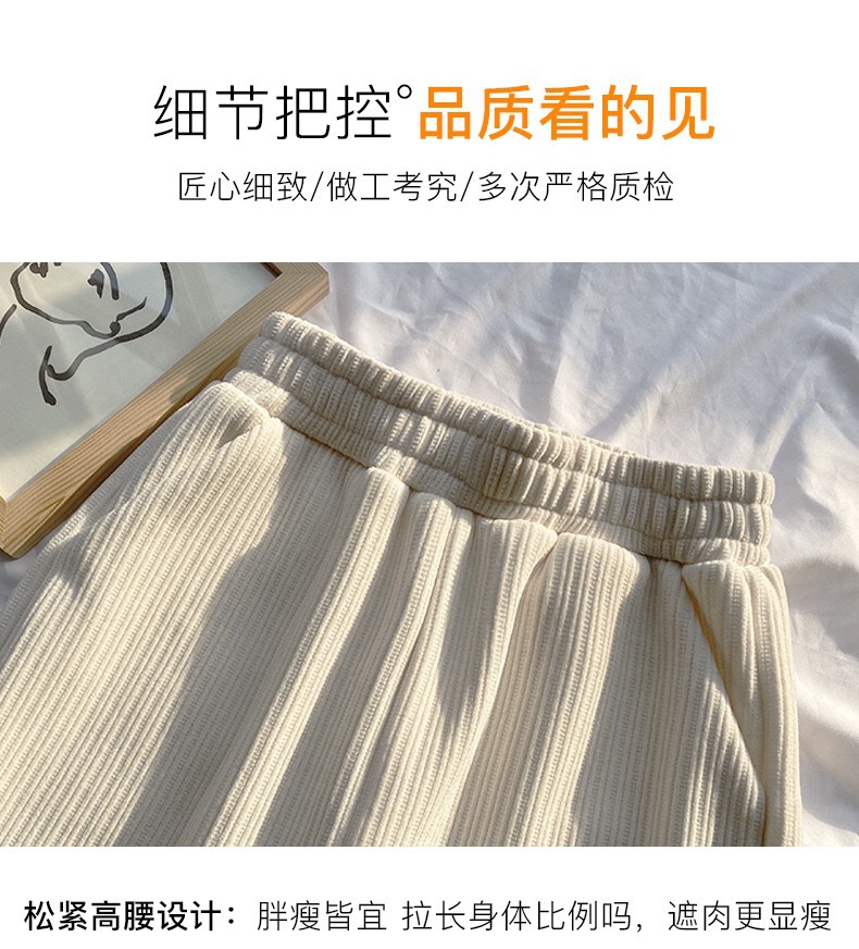 Осенне-зимние кремовые брюки из синели, женские утолщенные пучки ног, широкие брюки с высокой талией, тонкие повседневные спортивные брюки