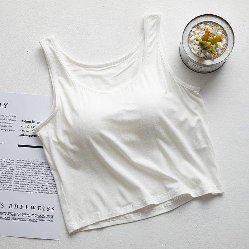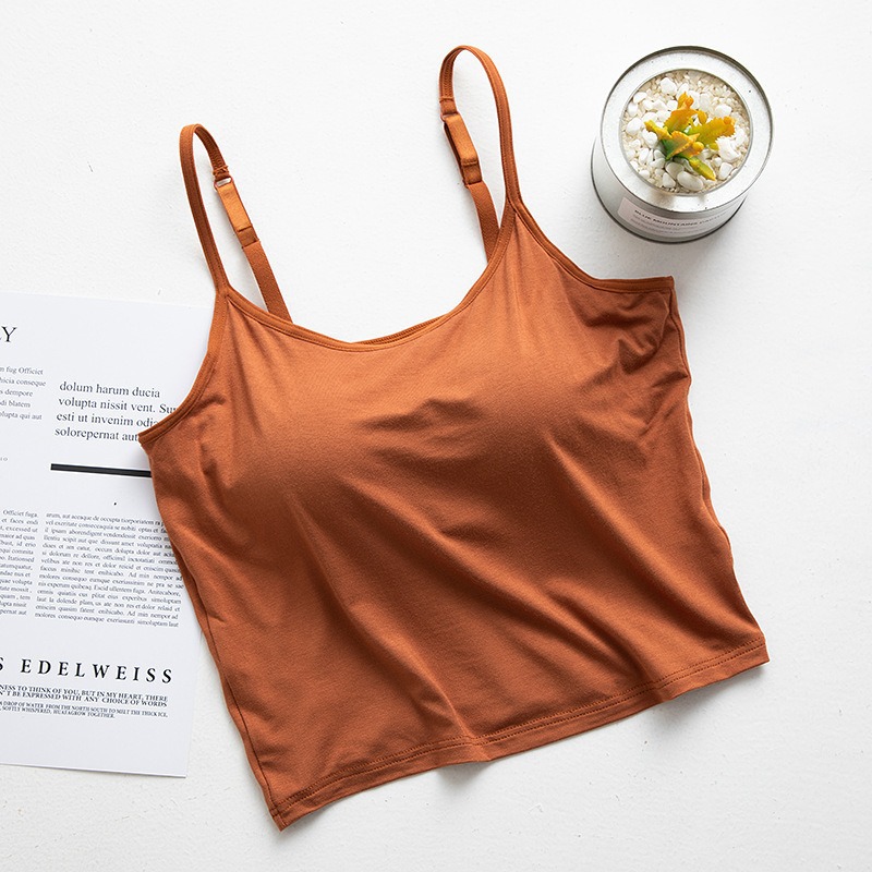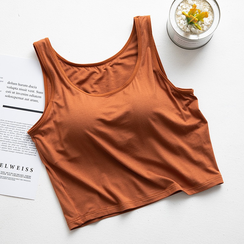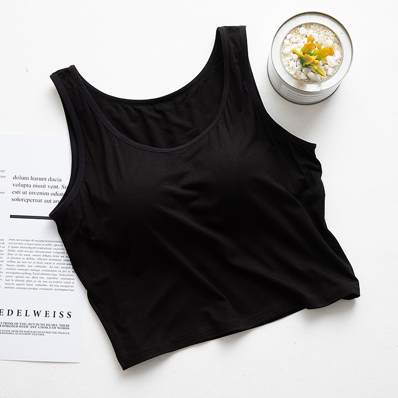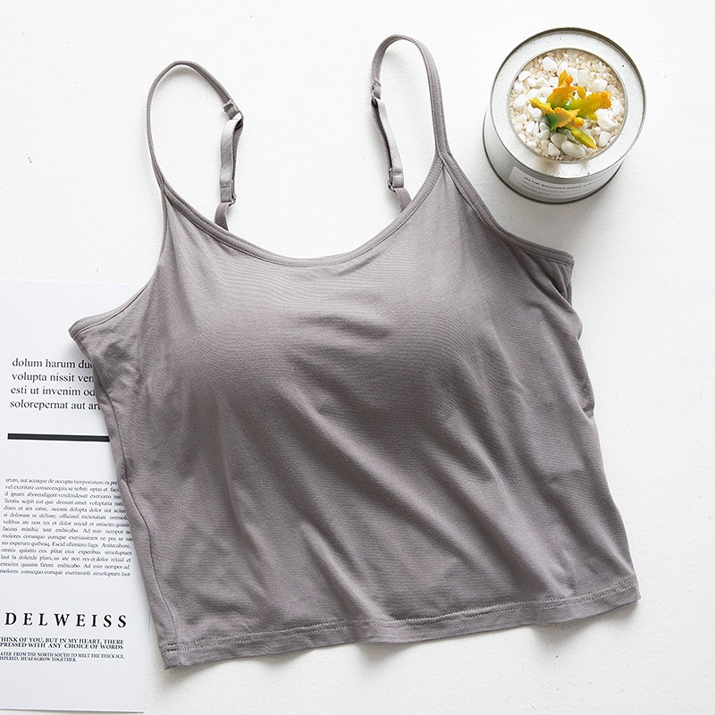 Модальный топ-камизоль с подкладками для женщин, летняя верхняя одежда, укороченный топ для йоги, топ без рукавов с открытой спиной, внутренний слой со встроенным бюстгальтером.