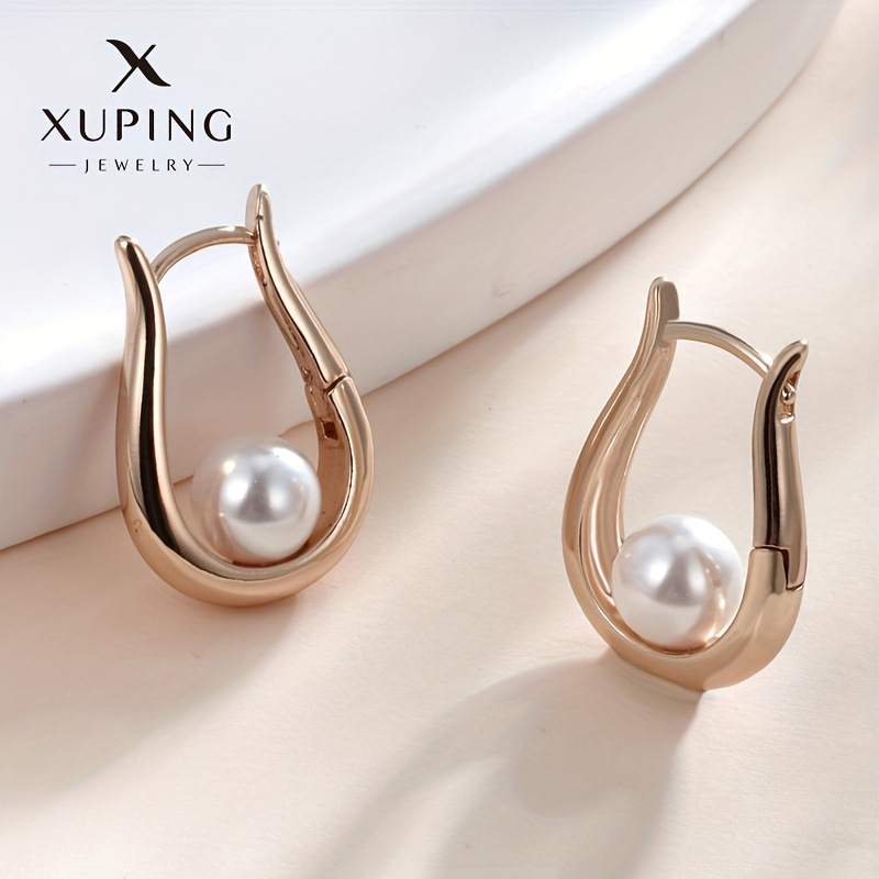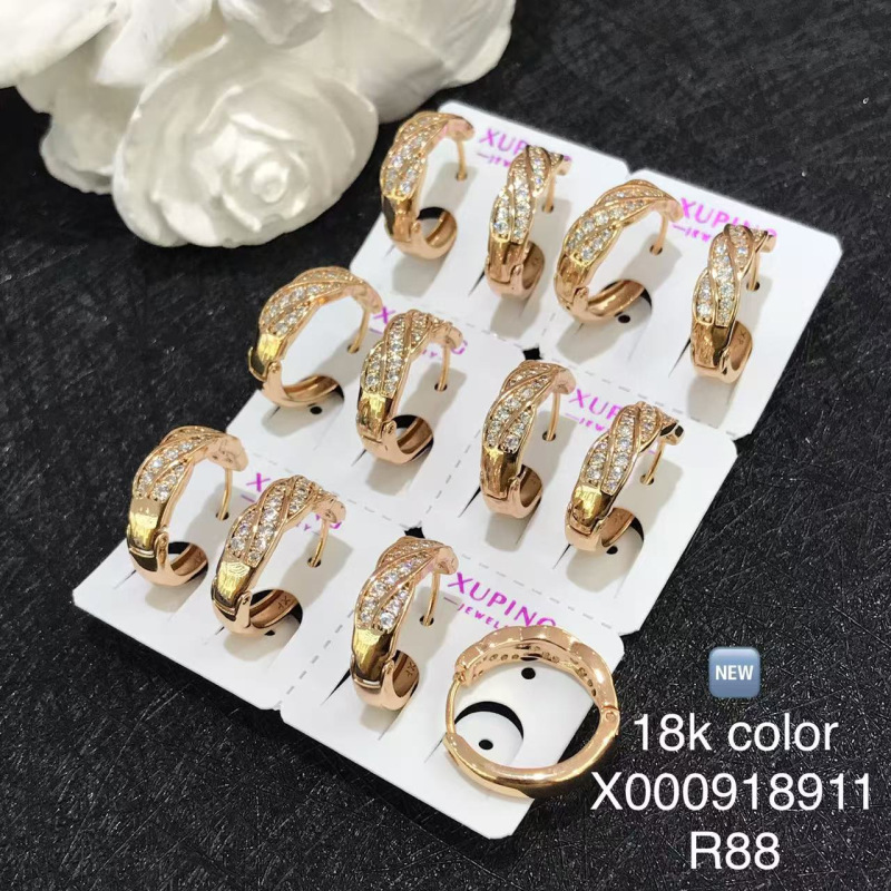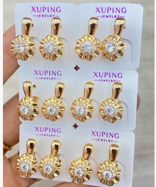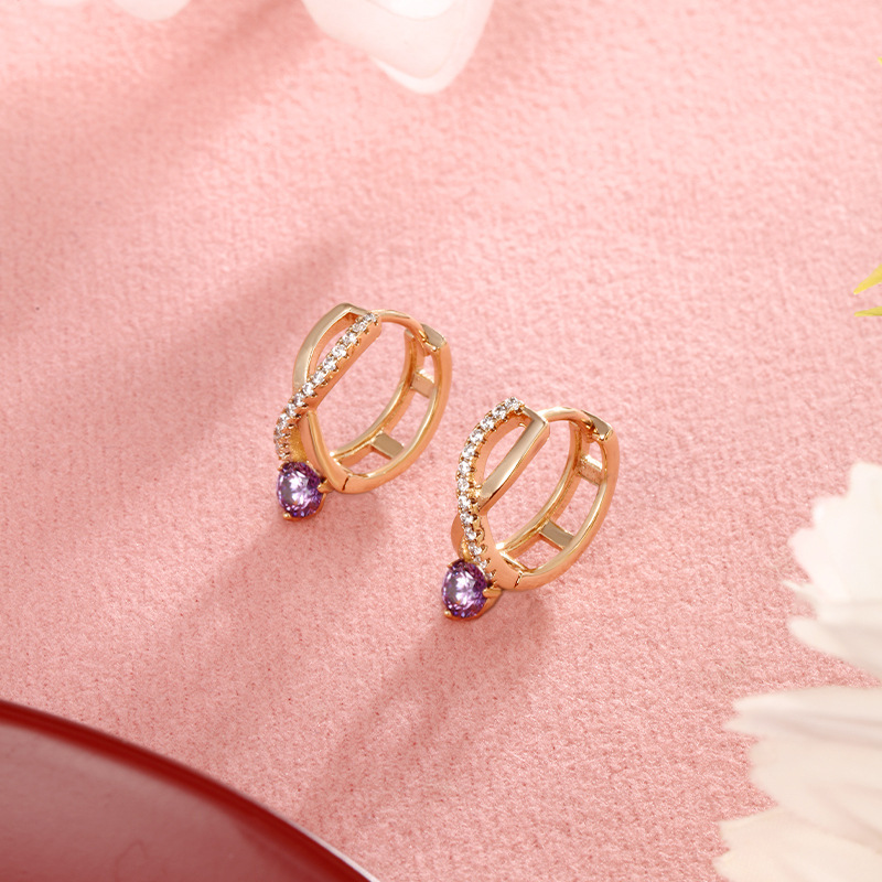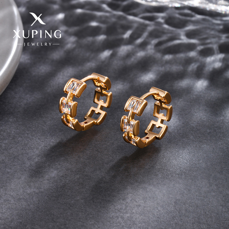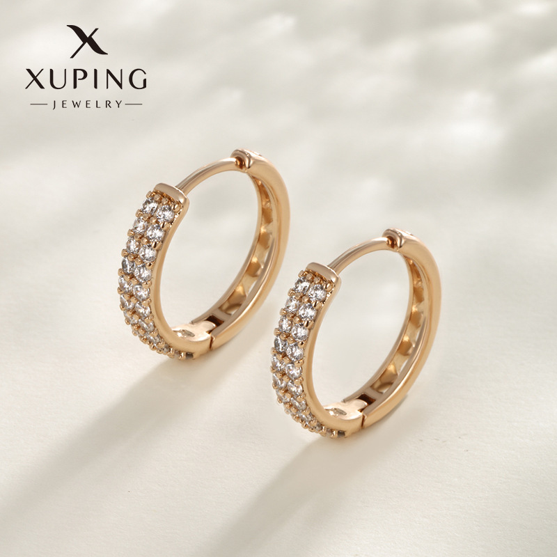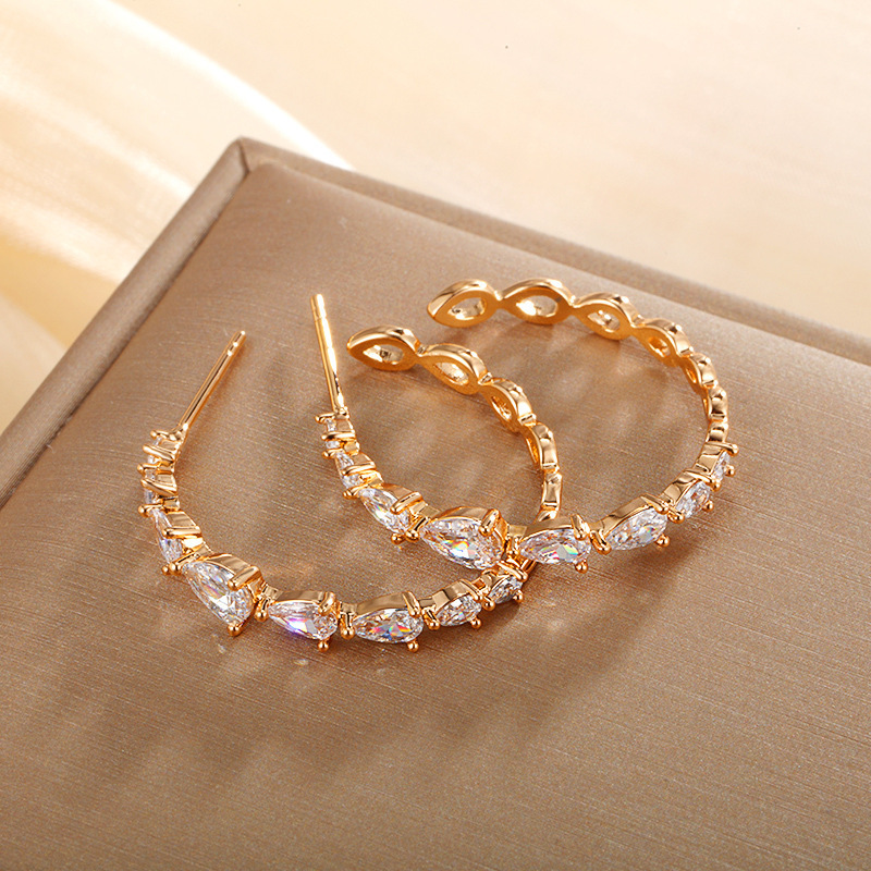 Серьги-кольца Xuping Jewelry: экстравагантные, в европейско-американском стиле, с цирконами, для осени и зимы, класса люкс