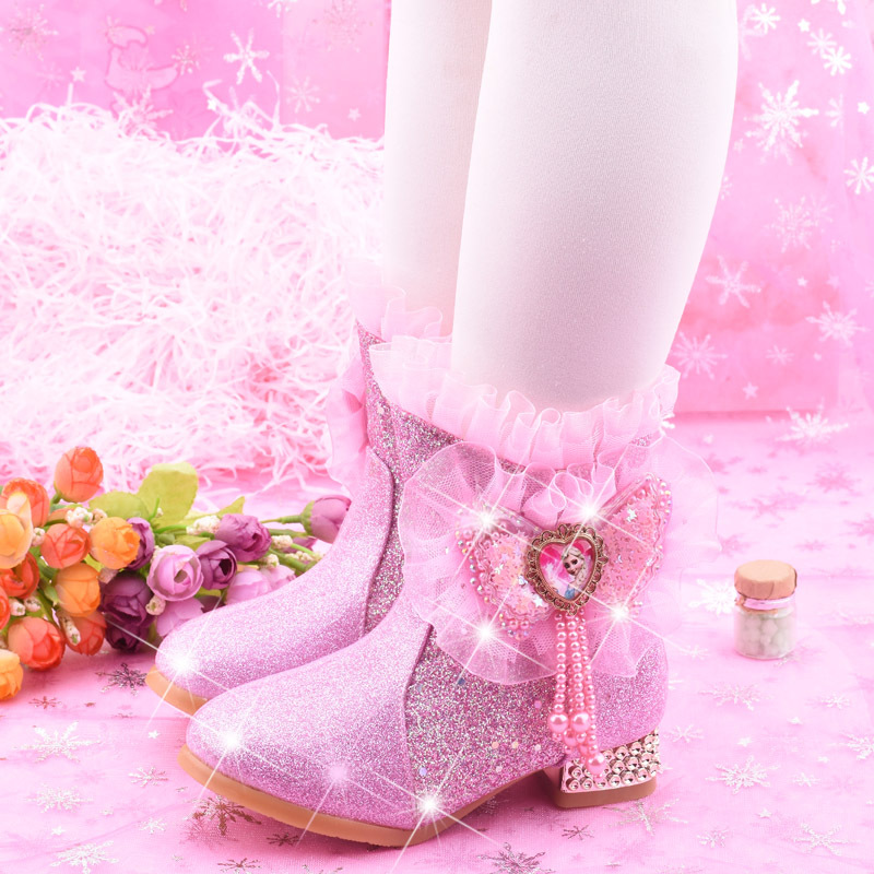 Ботинки для девочек, Осень-зима 2022, новинка, зимняя обувь принцессы в Корейском стиле на флисовой подкладке, детские сапоги на высоком каблуке, теплые короткие сапоги для маленьких девочек