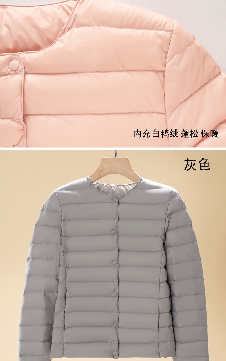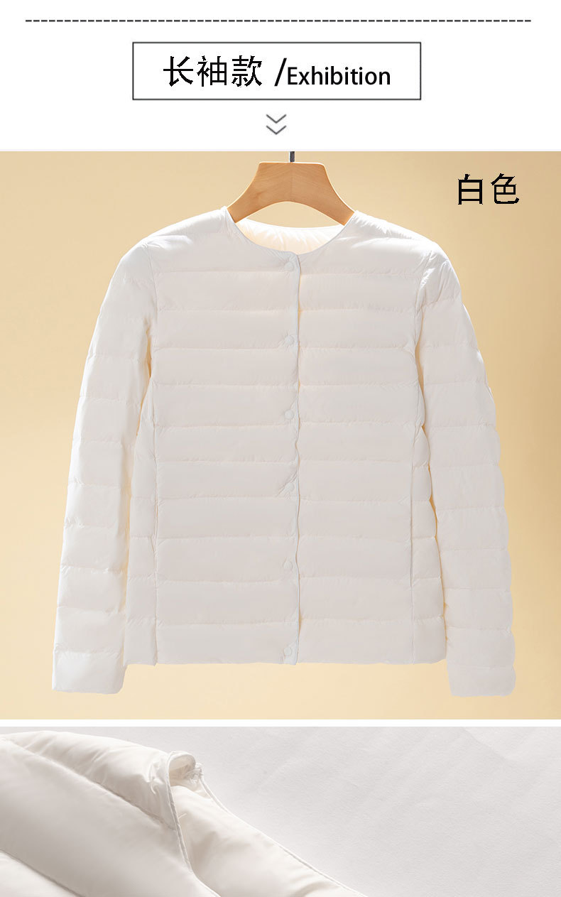 Легкий женский пуховик, короткий 2024, осень и зима, новинка, v-образный вырез, круглый вырез, длинный рукав, белый утиный пух, легкая куртка большого размера