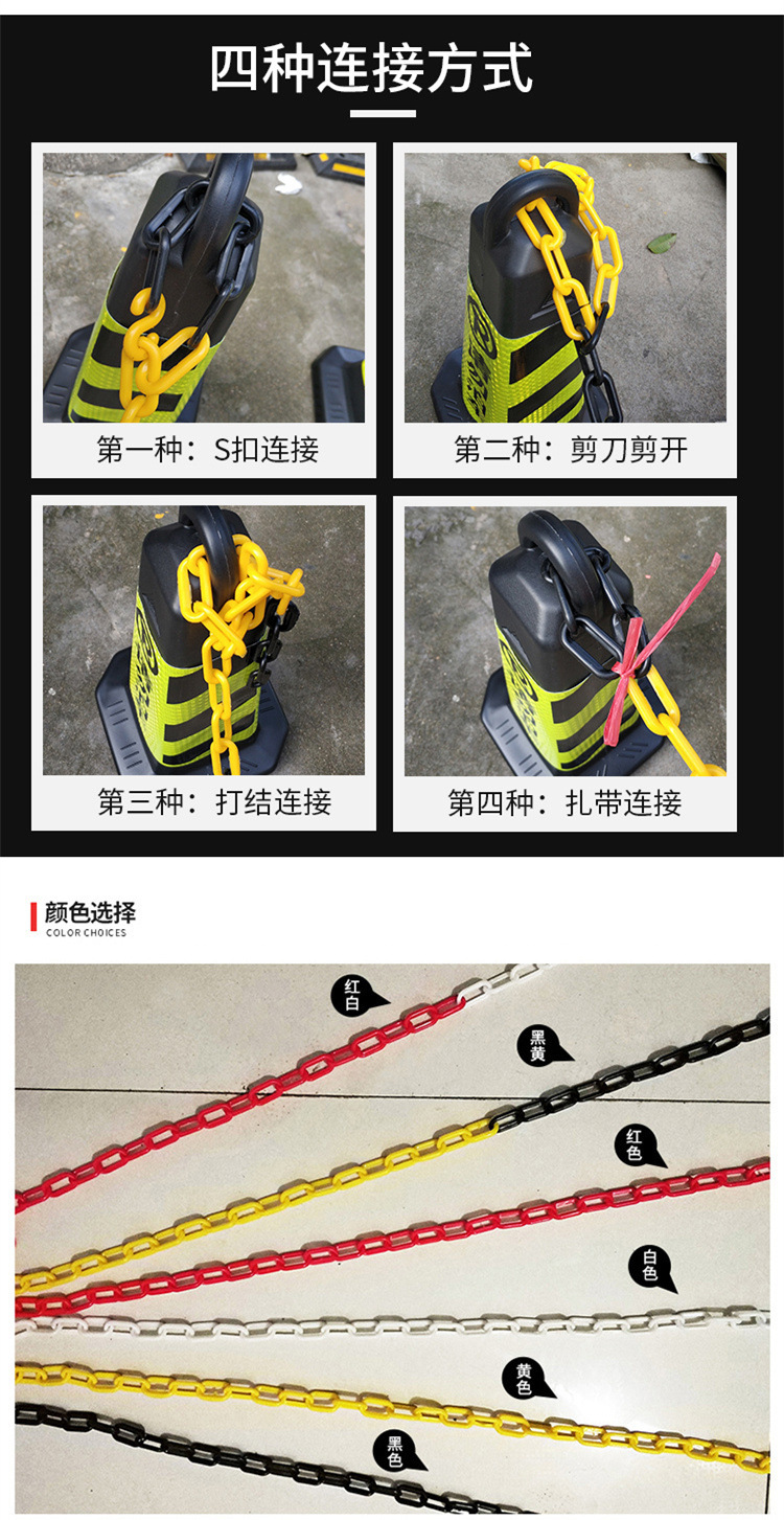 Предупреждающая цепь дорожная конусная цепь PE красный белый желтый черный предупреждающий столбик защитная цепь для сушки одежды дорожная изоляционная пластиковая цепь