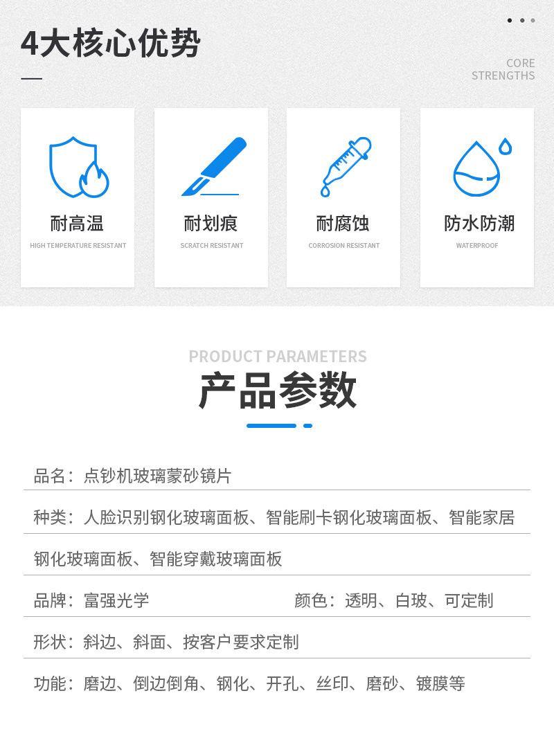 Производитель предлагает индивидуальные закаленные стеклянные панели с распознаванием лиц, умные домашние носимые устройства, считыватели карт и прозрачные открывающиеся стеклянные панели.