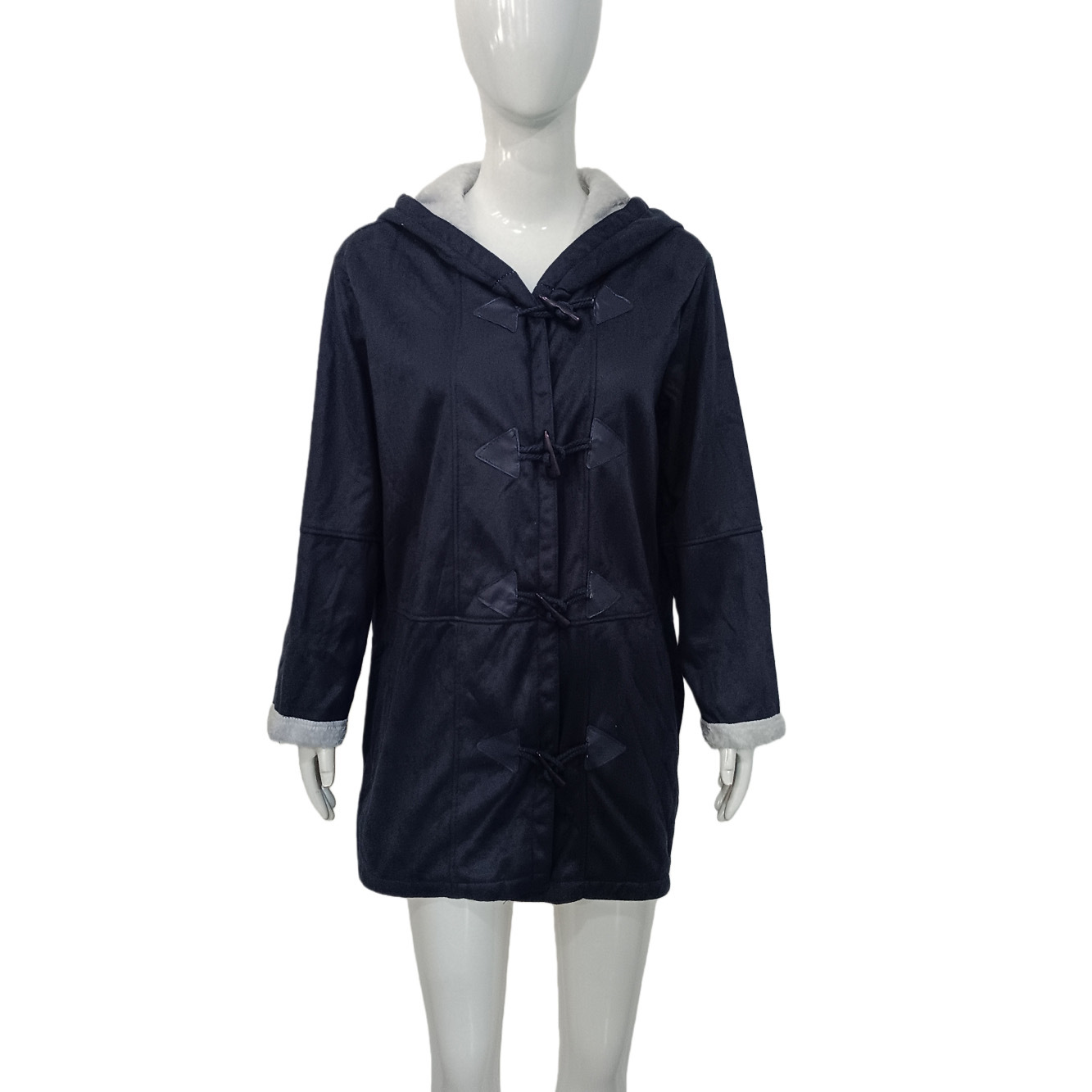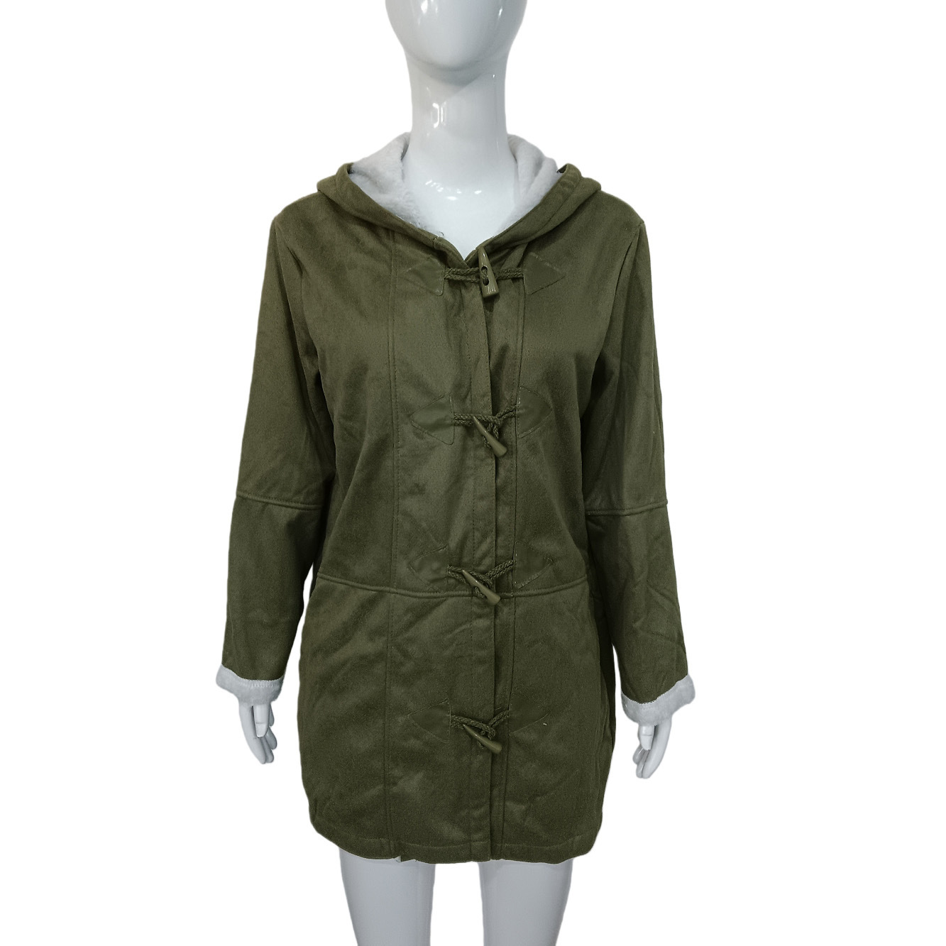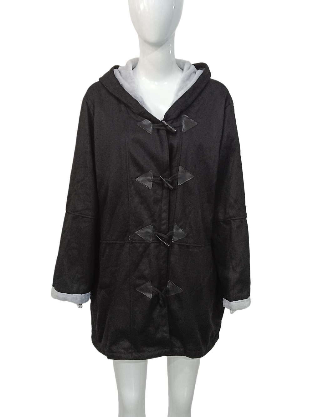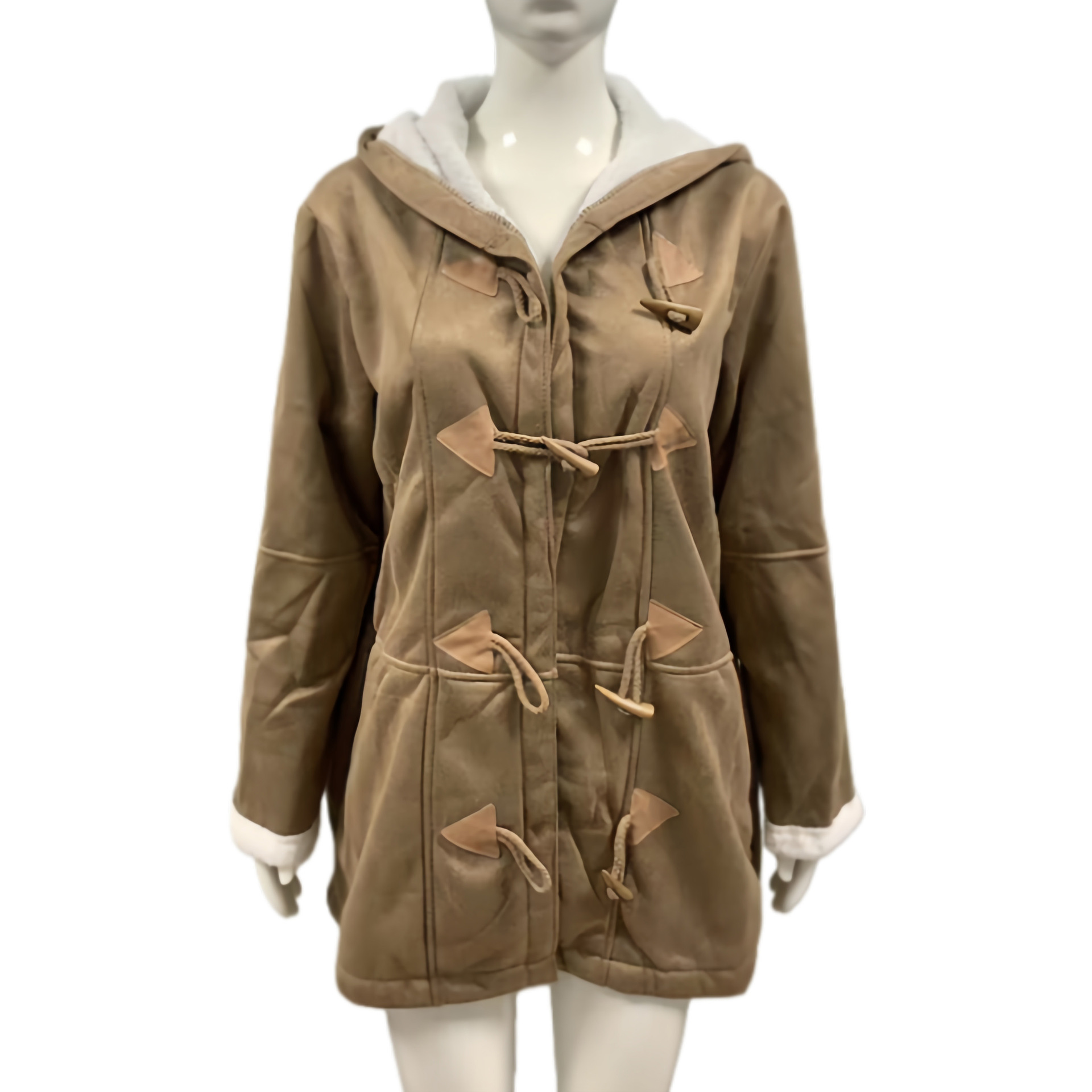 欧美冬季知性简约原宿风纯色休闲纽扣开衫保暖中长款连帽女士大衣