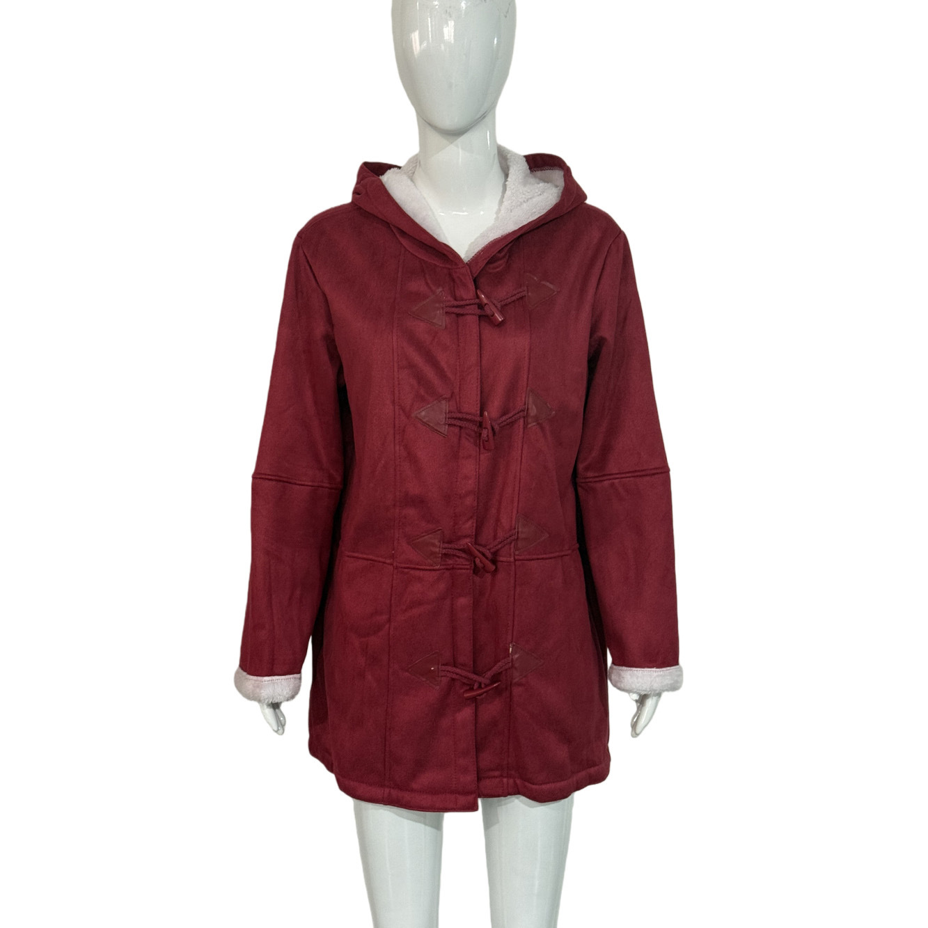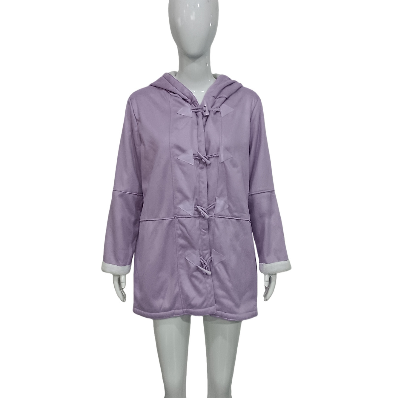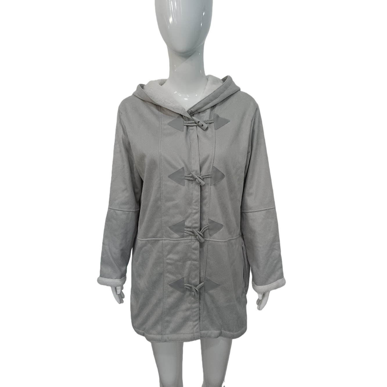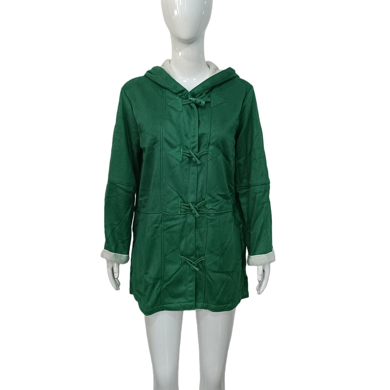 欧美冬季知性简约原宿风纯色休闲纽扣开衫保暖中长款连帽女士大衣