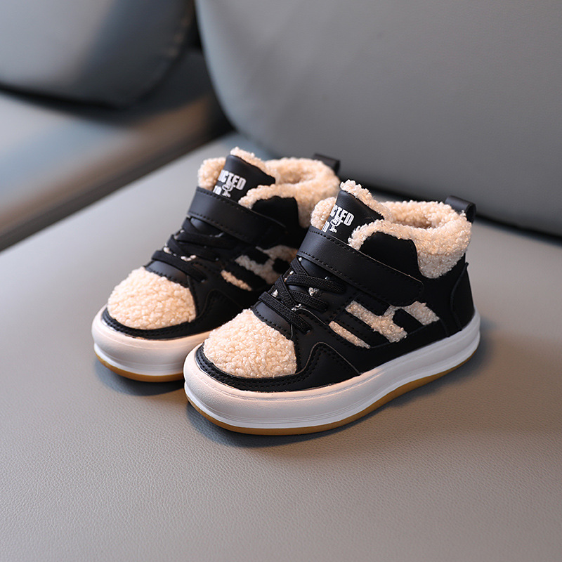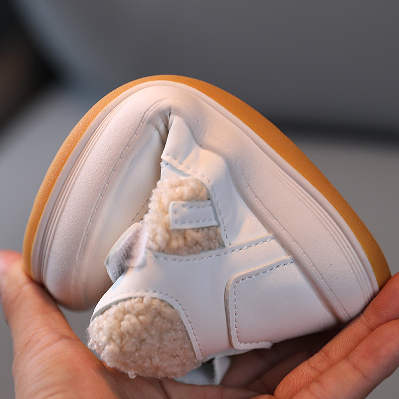 2021 Зимняя Детская хлопчатобумажная обувь, обувь для мальчиков, повседневная обувь на флисовой подкладке, детская обувь, повседневная обувь для девочек, Белая теплая зимняя обувь
