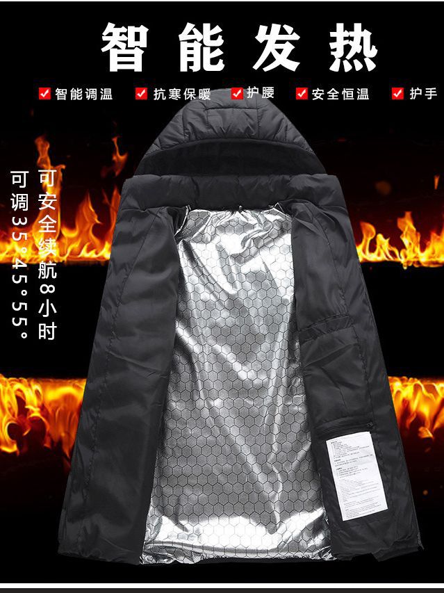 Трансграничная интеллектуальная нагревательная куртка с хлопковой подкладкой с капюшоном и длинным рукавом USB нагревательное пальто постоянная температура теплый пух куртка с хлопковой подкладкой нагревательный костюм