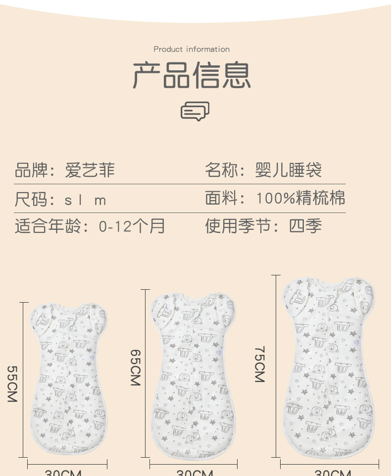 Детская пеленальная сумка с защитой от вздрагивания из чистого хлопка Подушка для младенцев Пеленальный мешок для новорожденных, эластичный рукав, трансграничный