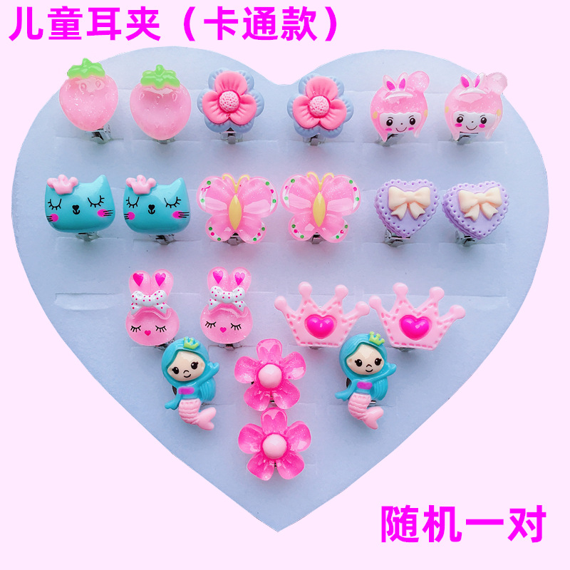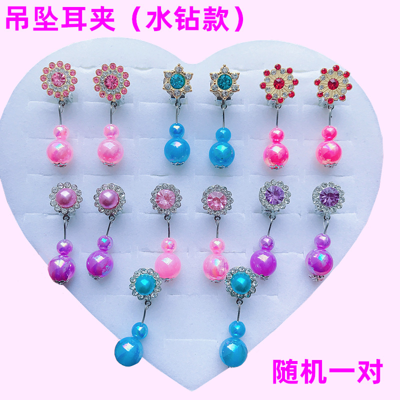 Детский зажим для ушей без отверстия для ушей милые поддельные серьги детские серьги кулон с драгоценным камнем маленькая девочка зажим для ушей ювелирные изделия оптом