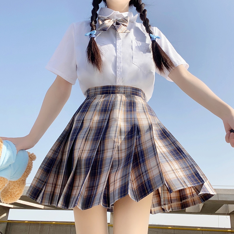 JK Униформа юбка осень базовый полный комплект клетчатой юбки рубашка с короткими рукавами галстук-бабочка костюм полный комплект в японском студенческом стиле