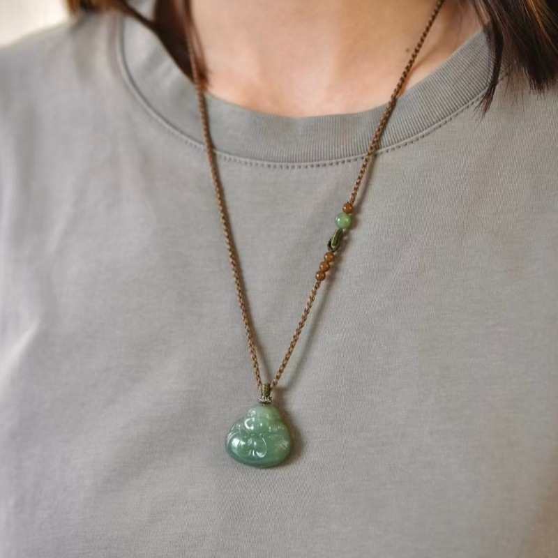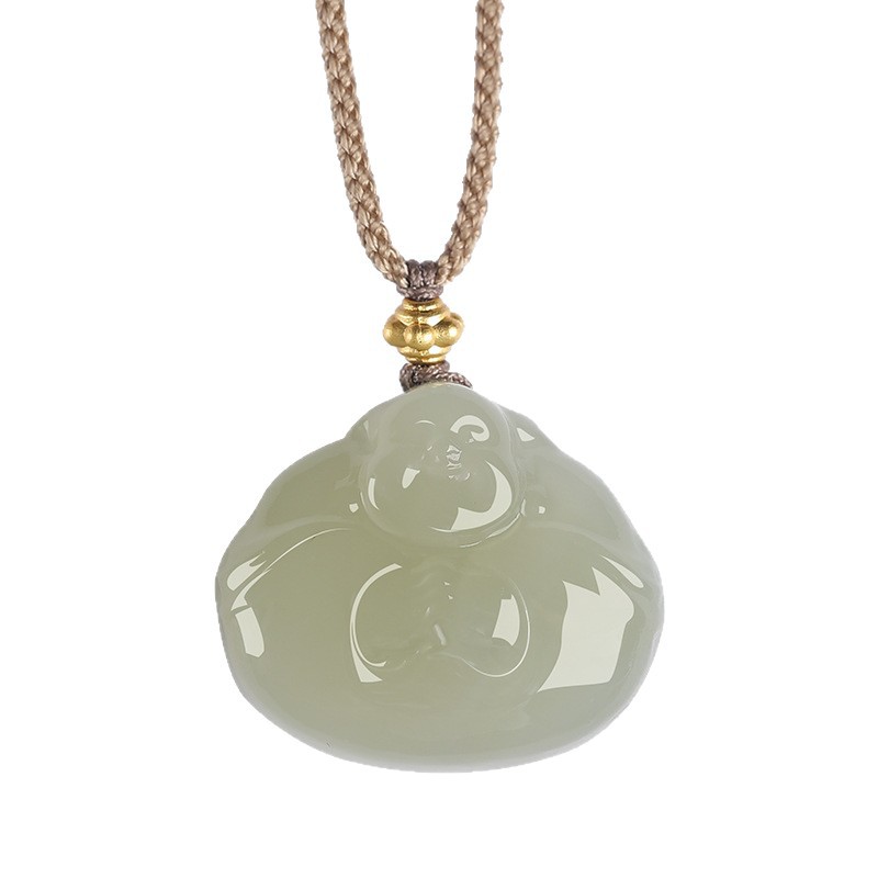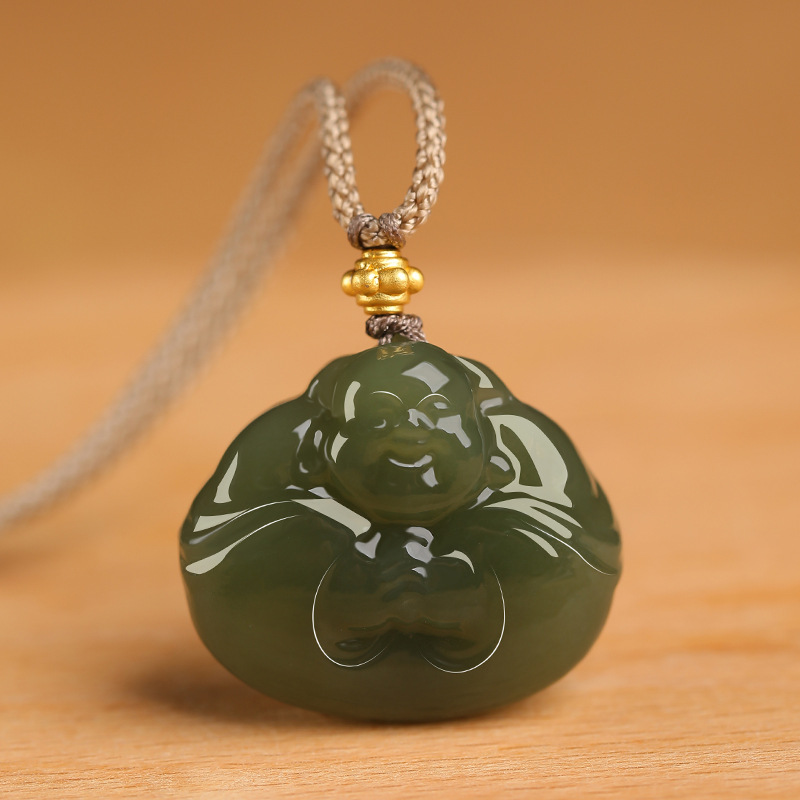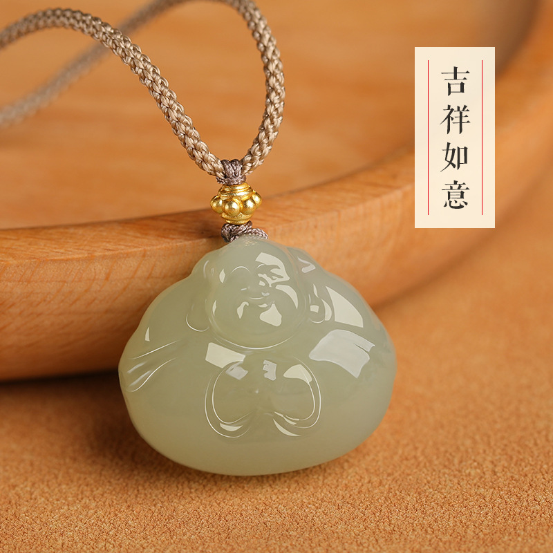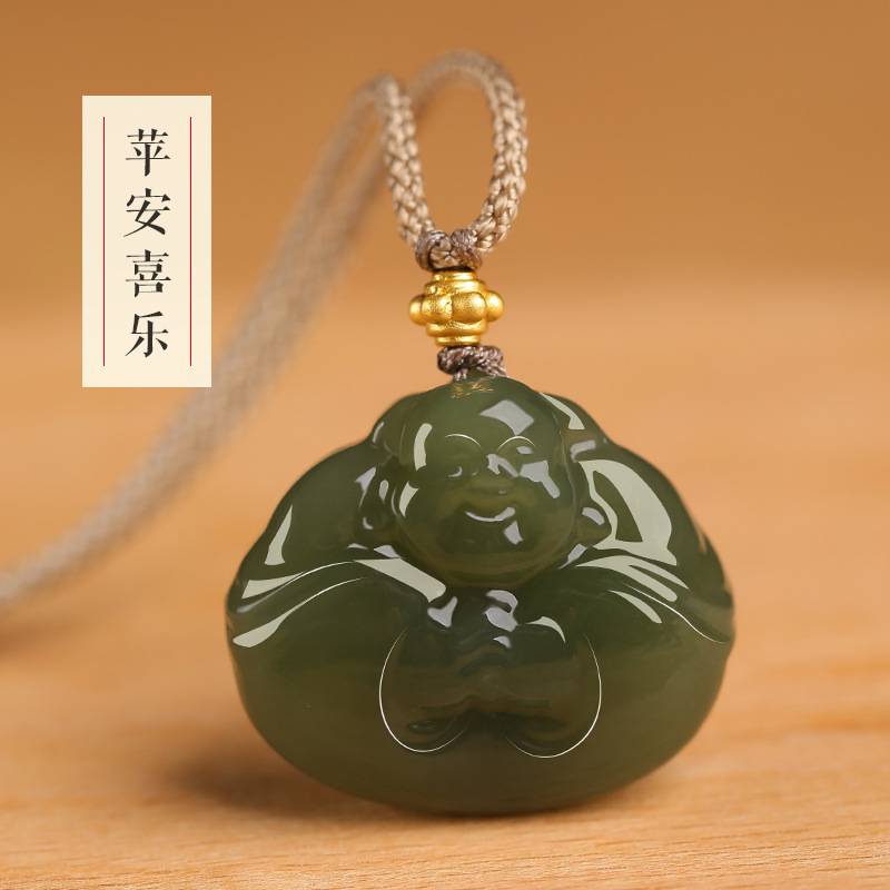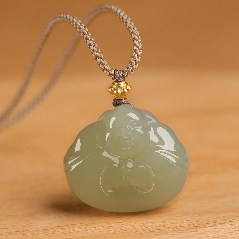 Натуральный нефрит Хэтиан, кулон Будда цвета прозрачной воды, Будда Майтрейя, Будда с большим животом, унисекс, Будда, обнимающийся с ним, Будда, смеющийся, нефритовый кулон