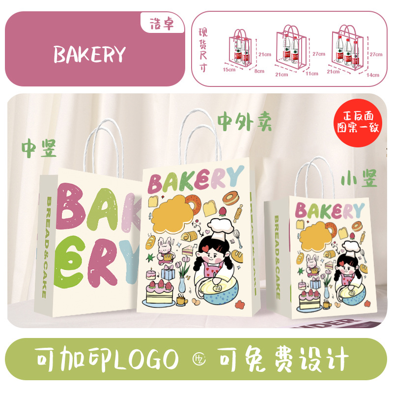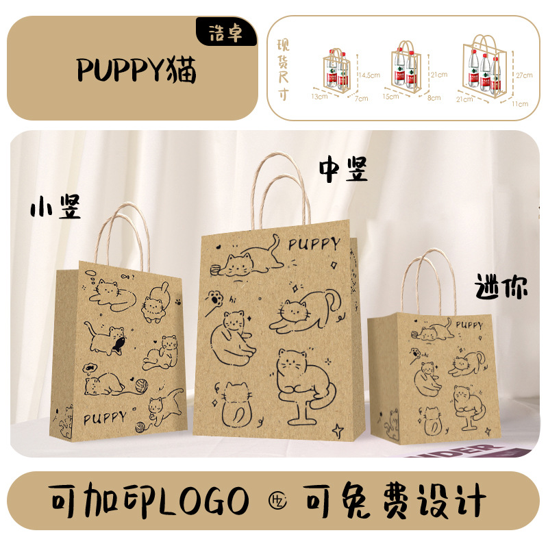 Бумажный пакет из крафт-бумаги, сумка-тоут, упаковка для кофе, молочного чая, выпечки, подарков на Новый год и весенний фестиваль, индивидуальный дизайн