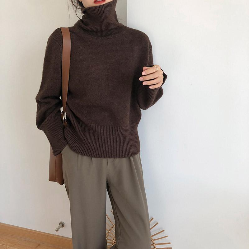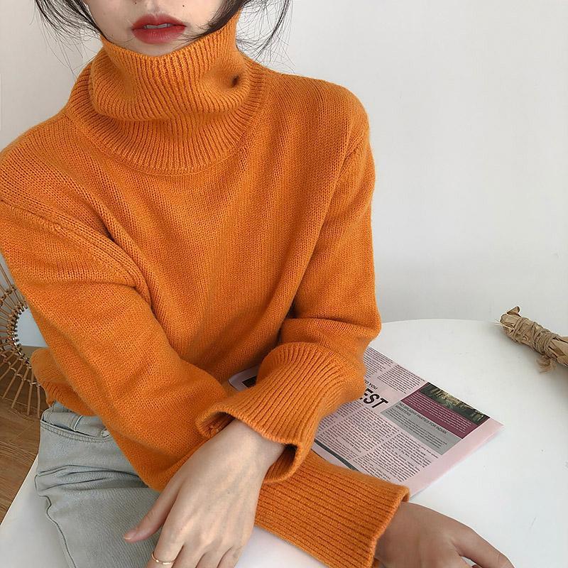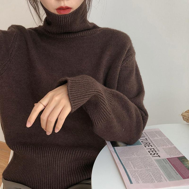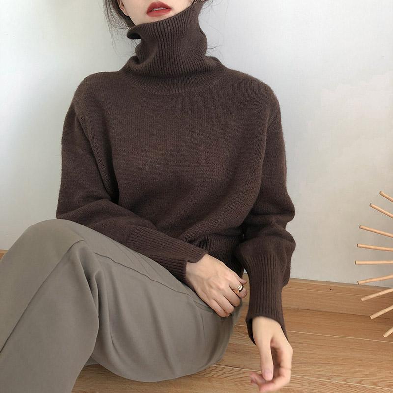 Водолазка в ленивом стиле, Женская Новинка на осень и зиму 2023, верхняя одежда в гонконгском стиле в стиле ретро, пуловер, утолщенный Свободный вязаный Топ