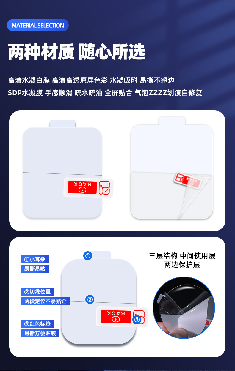 Версия с одним ножом · домашняя гидрогелевая пленка; Позиционирование и наклеивание·бытовая гидрогелевая пленка; Универсальная версия ·Гидрогелевая пленка SDP; Наклейка-позиционирование ·Гидрогелевая пленка SDP