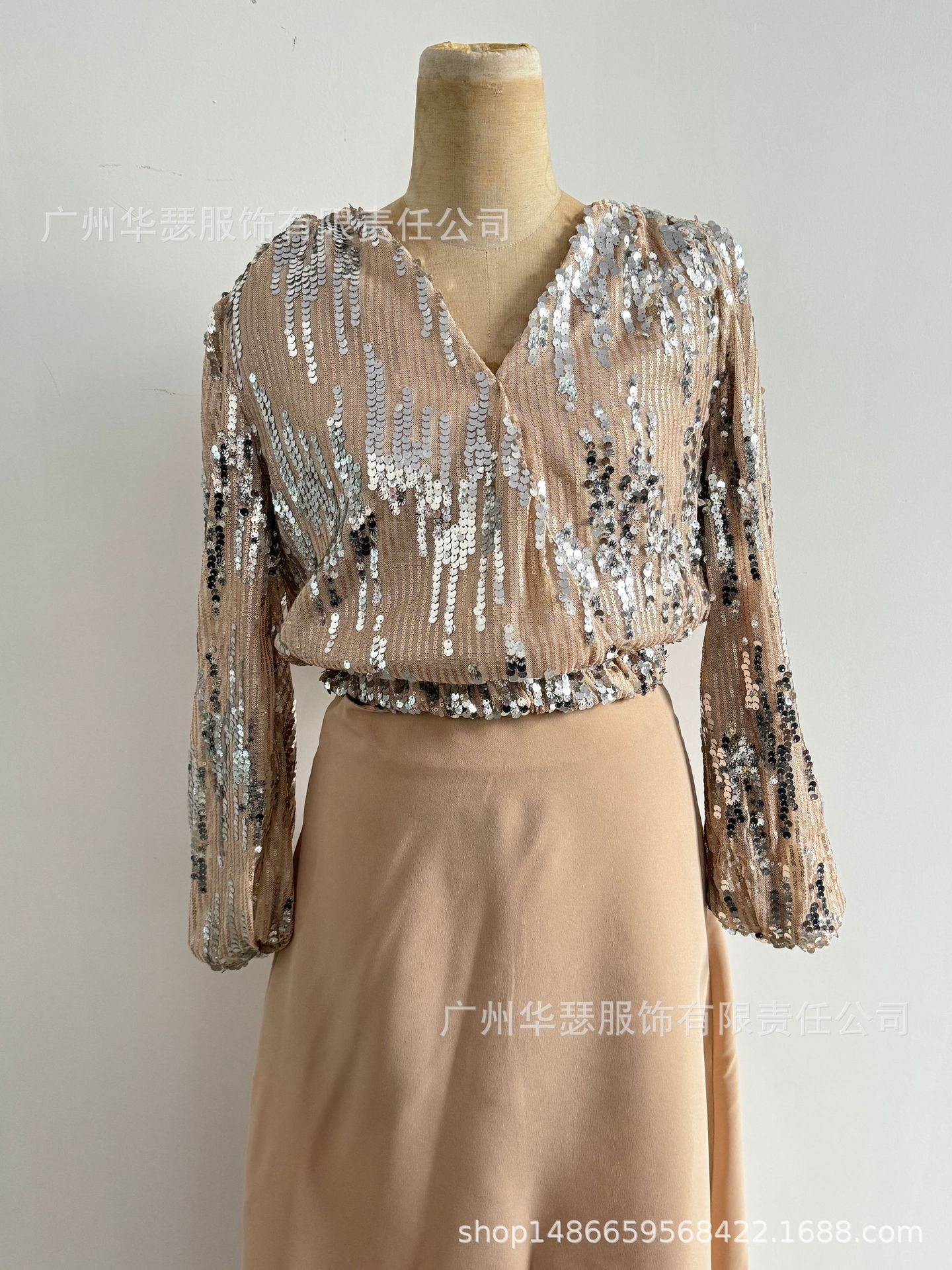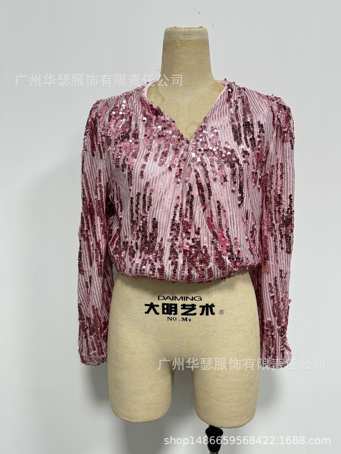 Новые женские модные топы и жакеты с пайетками и V-образным вырезом для осени и зимы 2025 года, для трансграничной торговли на Amazon, в европейском и американском стиле, с AliExpress.