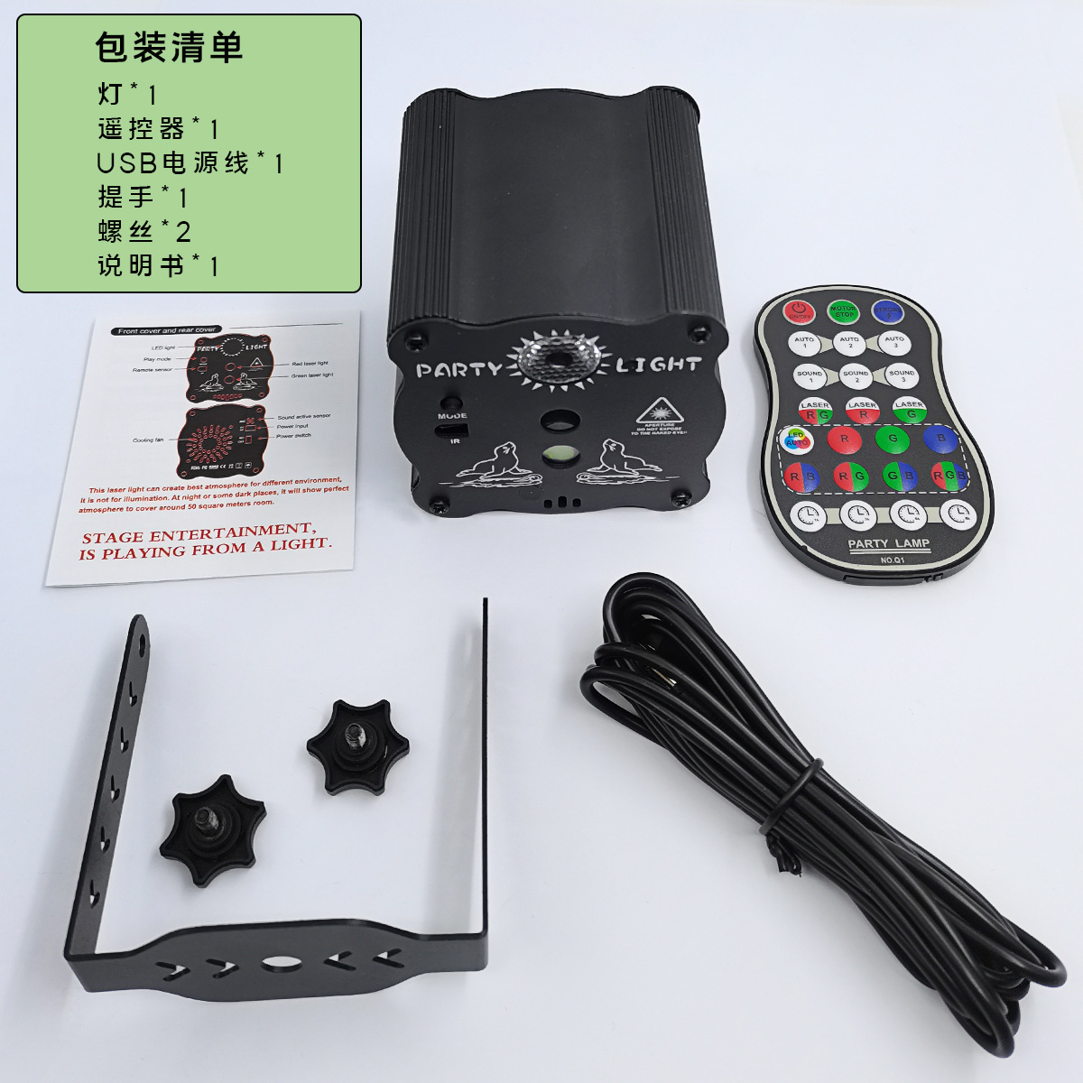 包装配件:灯+遥控器+USB电源线+说明书