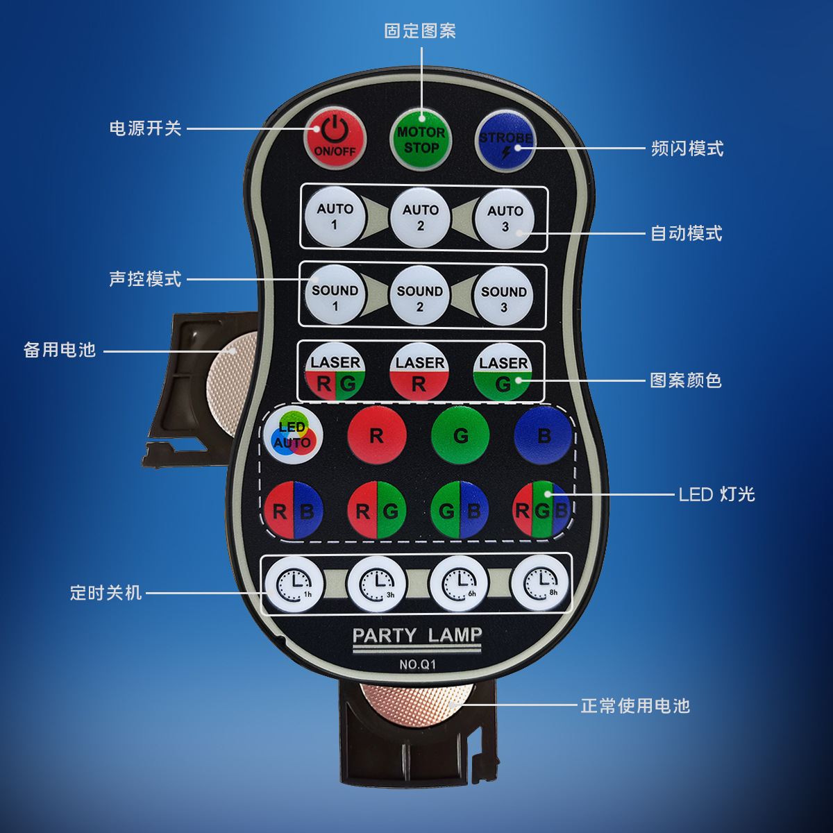 遥控器使用说明:红外遥控电池。