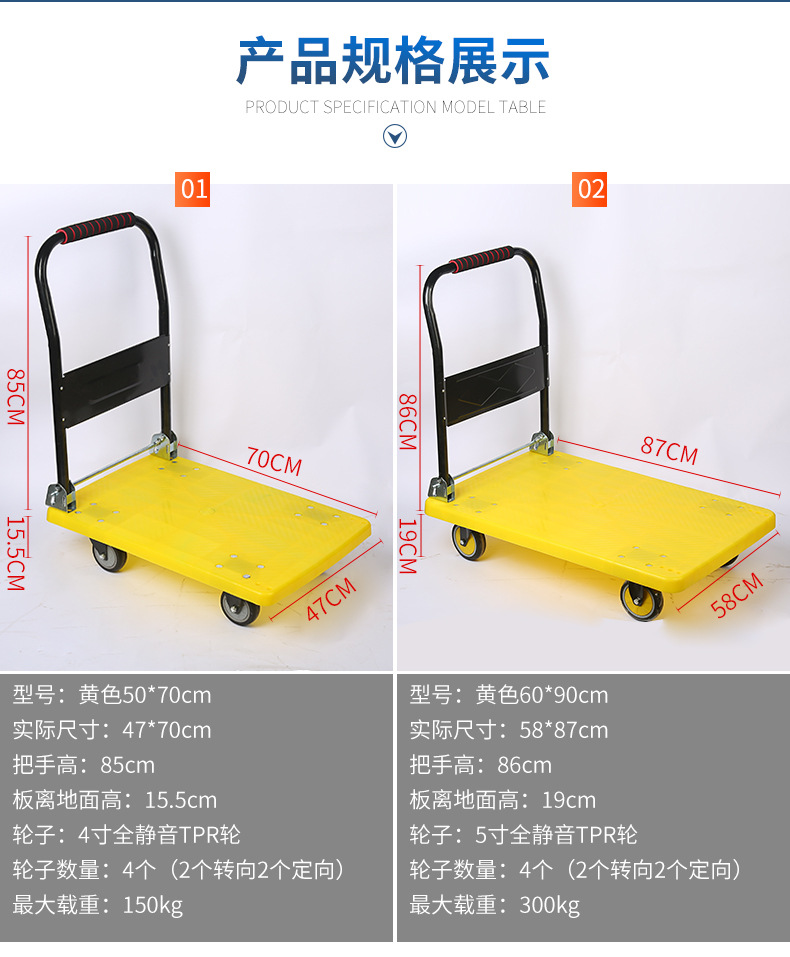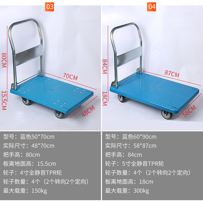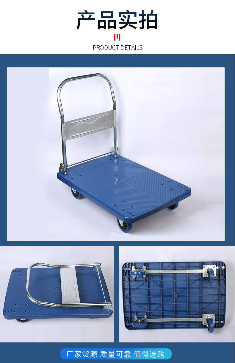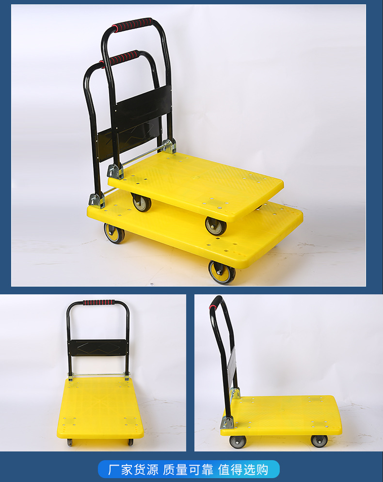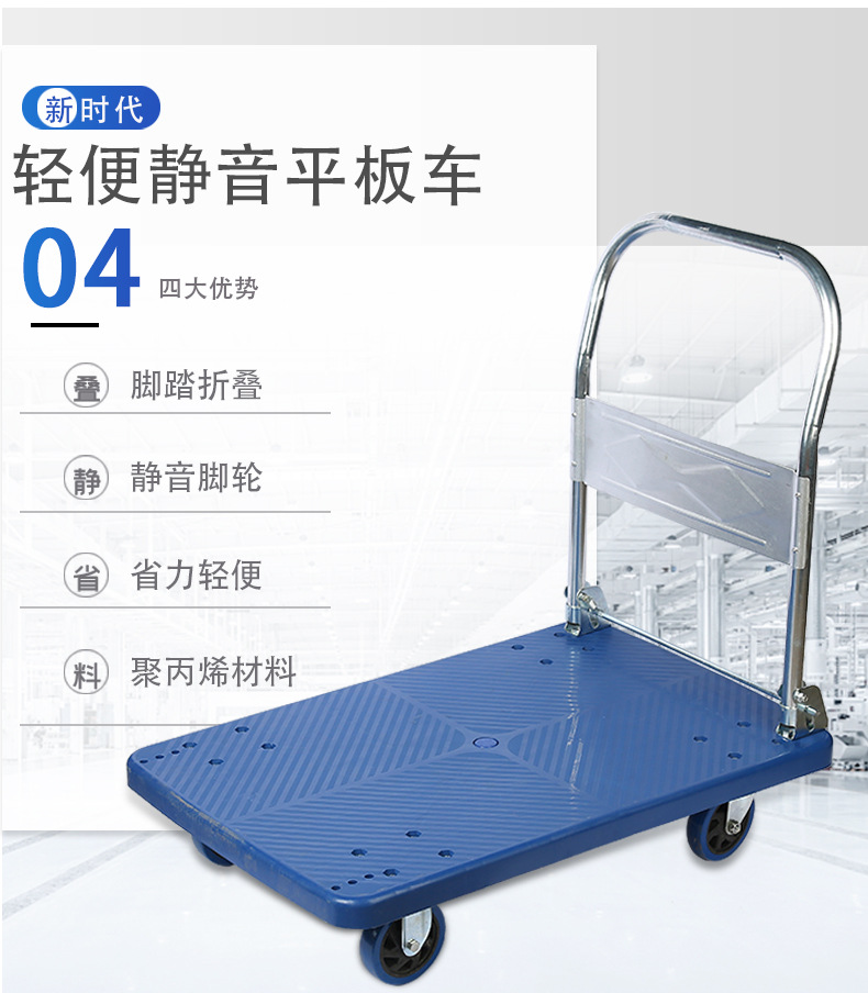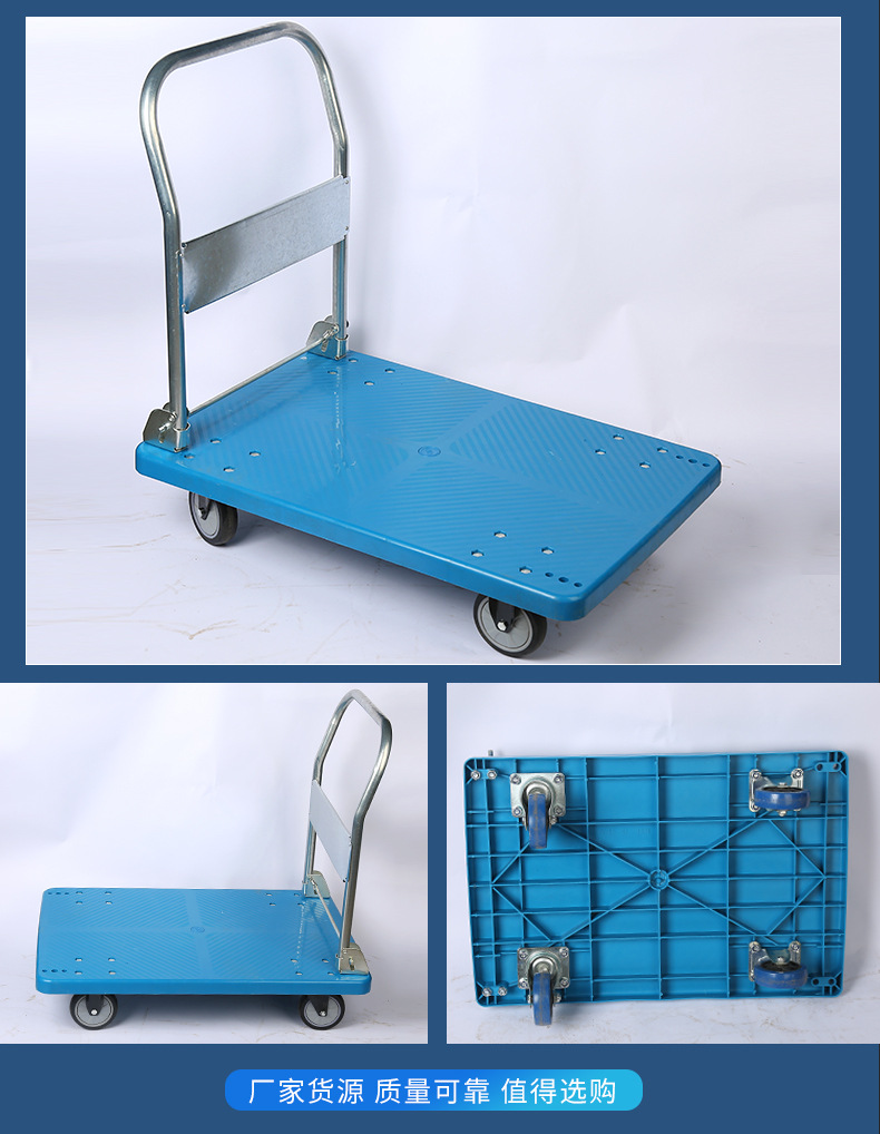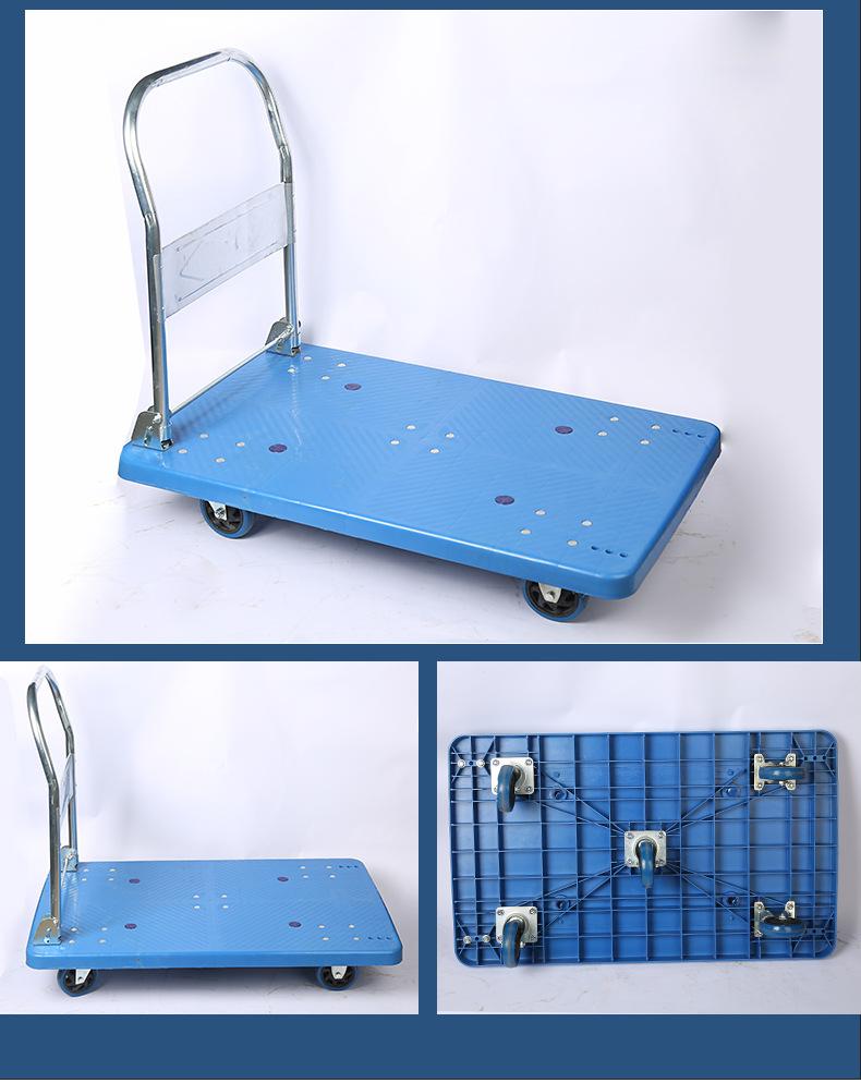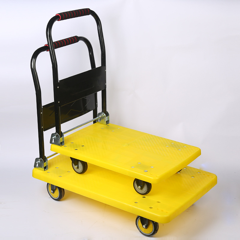 Оптовая продажа пластиковых тележек-платформ от производителя, бесшумные четырехколесные грузовые тележки-платформы, легкие складные тележки для складских перевозок