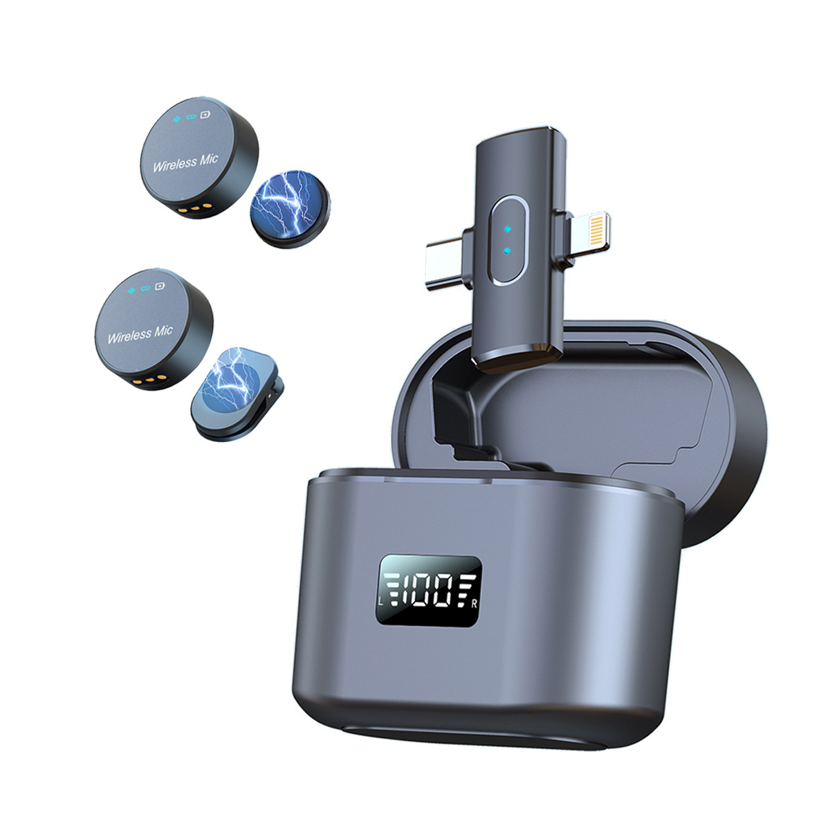 Трансграничный один перетаскивающий два беспроводных воротника для микрофона зарядный склад S18 мобильный телефон в прямом эфире