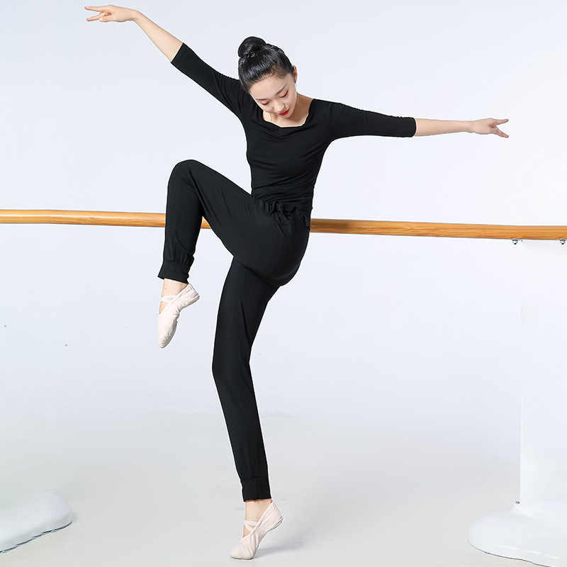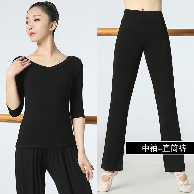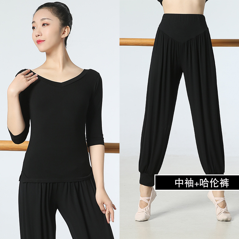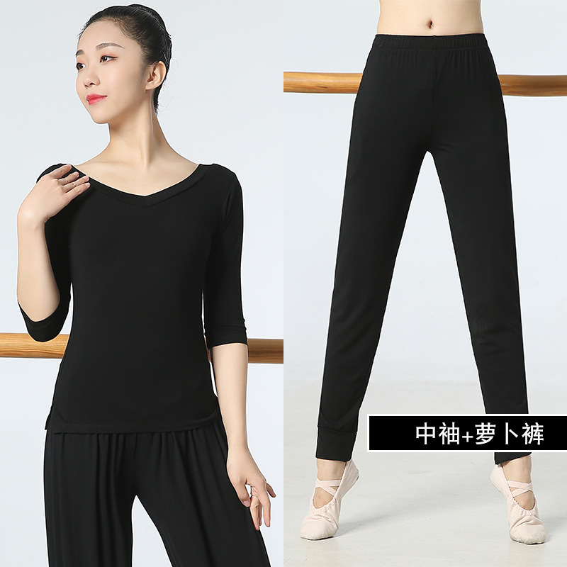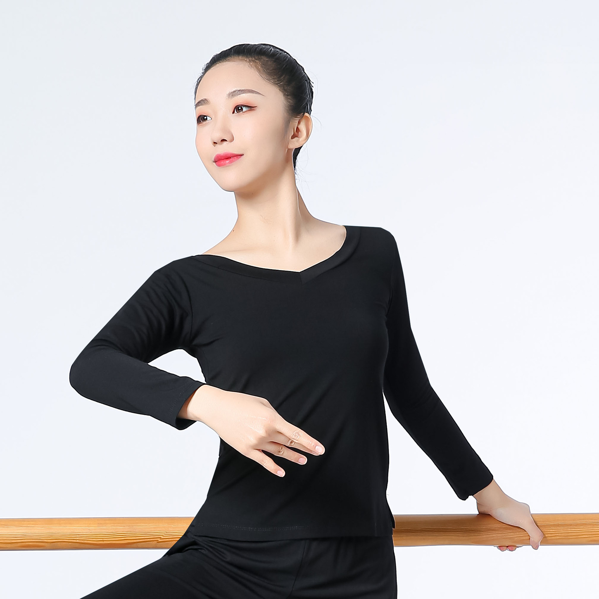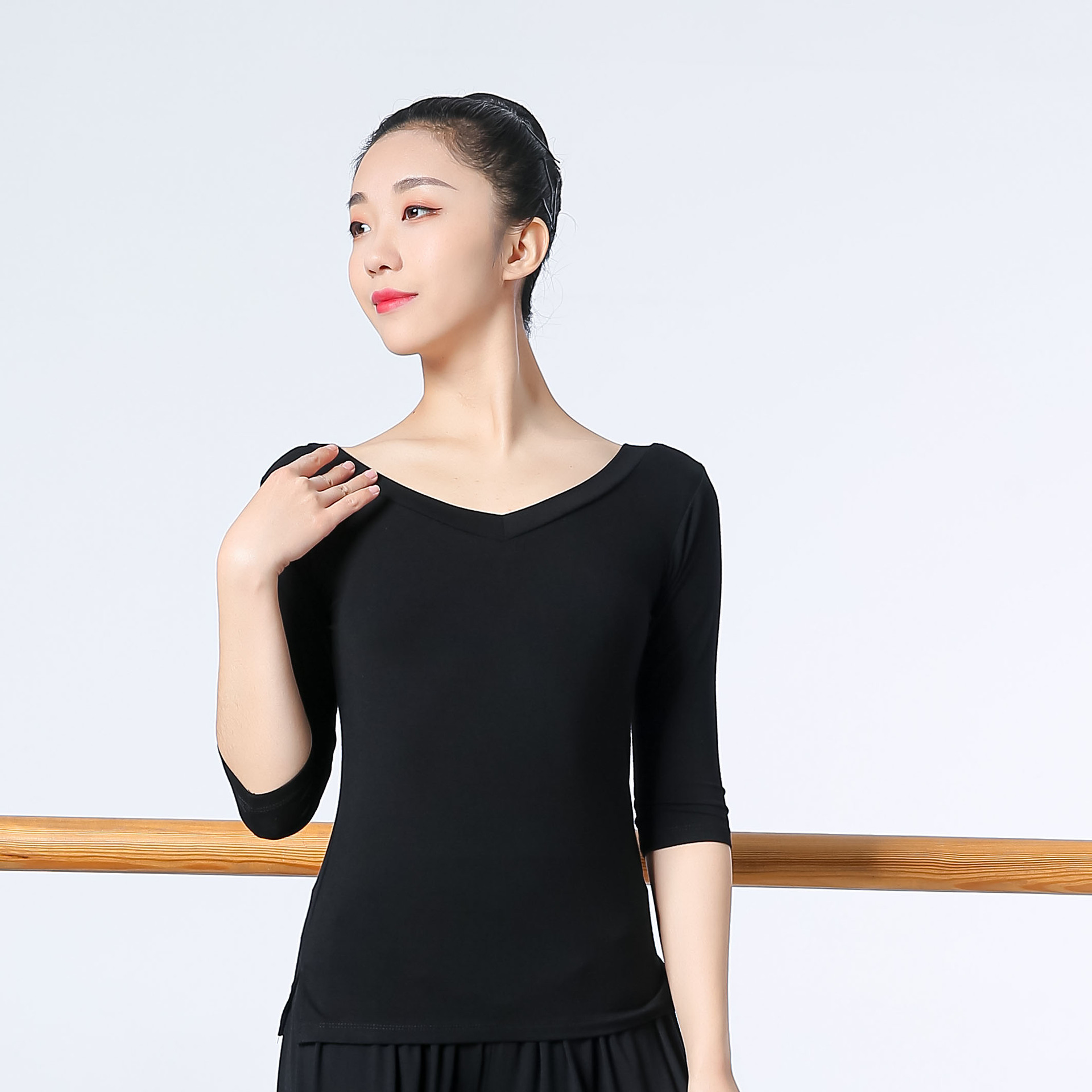 Одежда для плеч Практика Танцевальная женская верхняя тренировочная одежда для квадратных танцев Модальная черная танцевальная одежда Новая одежда со средним рукавом