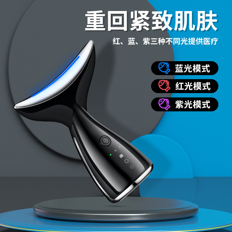 Трансграничное устройство для лифтинга и подтяжки кожи, с вибрацией и тепловой терапией для омоложения кожи, ухода за шеей против морщин, трехцветное устройство для красоты шеи