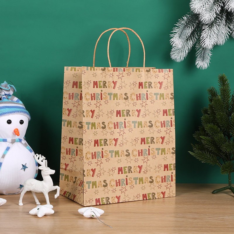 Рождественская подарочная сумка крафт-бумага для хранения подарочная сумка на вынос торт десерт сумка печать логотипа бумажный пакет