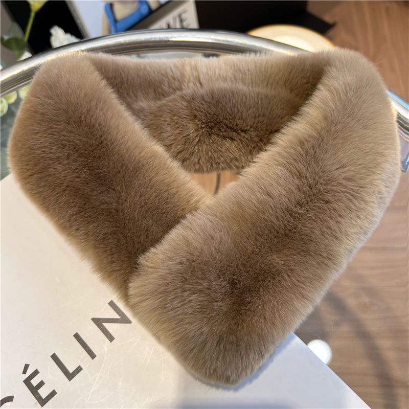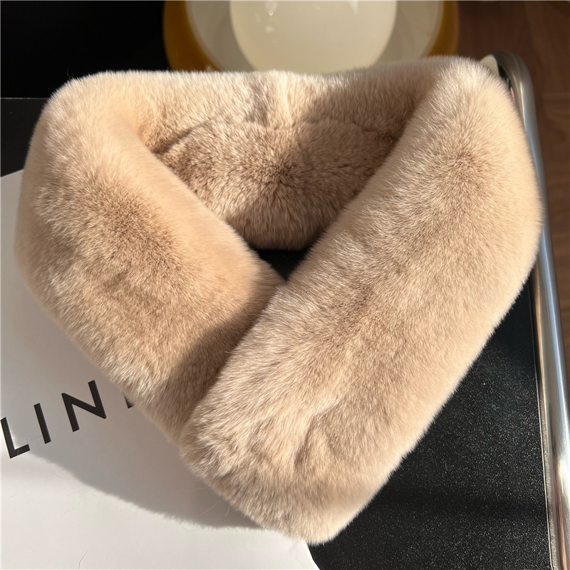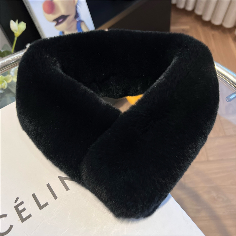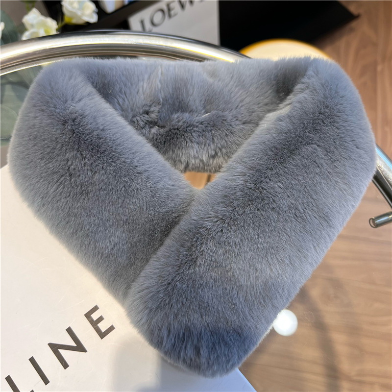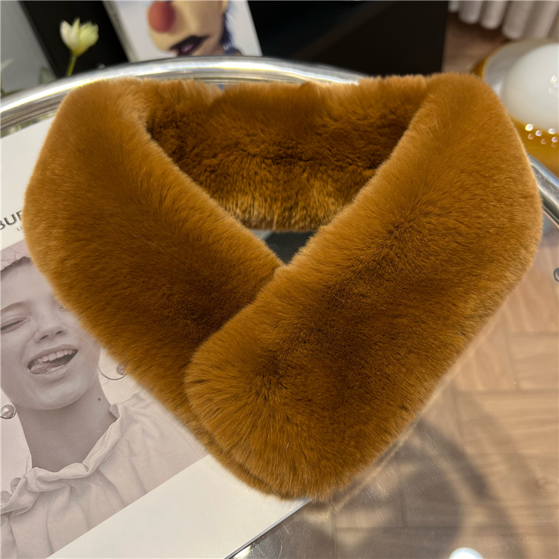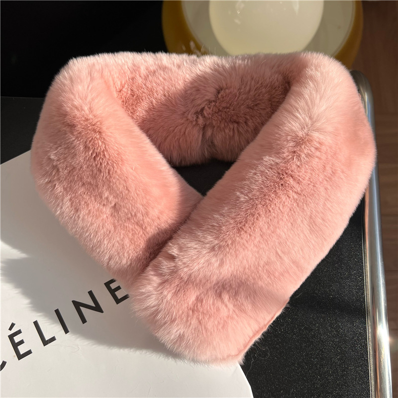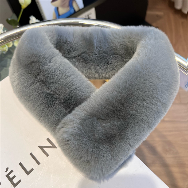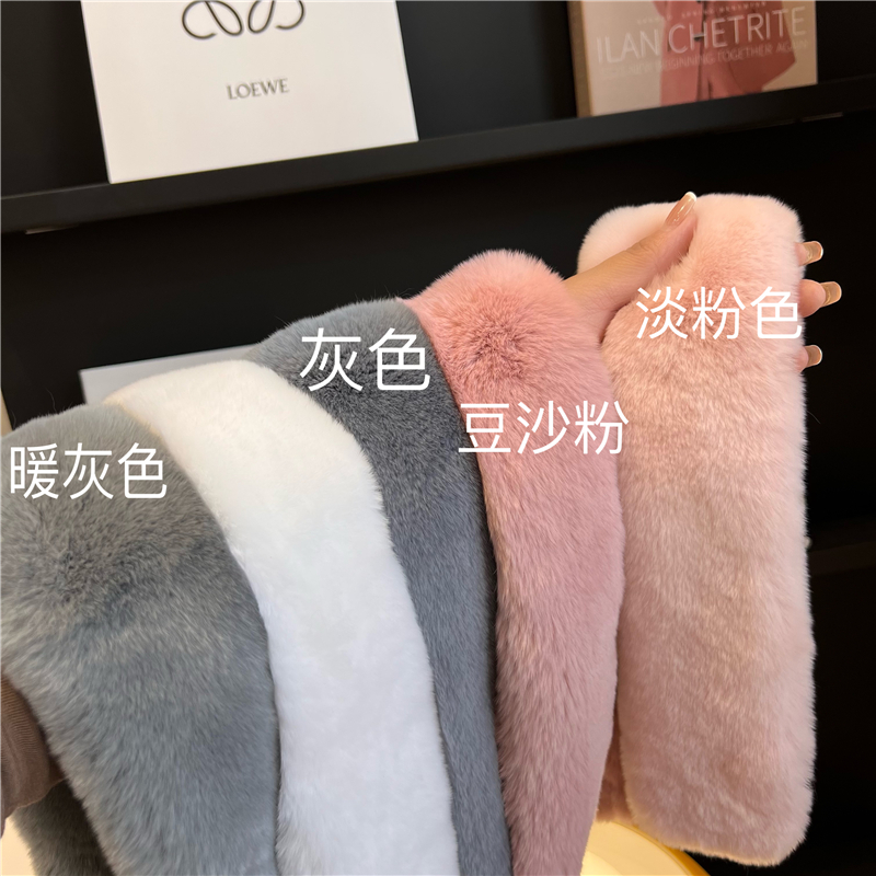 Шарф из натурального меха кролика Рекс, осенне-зимний милый Универсальный однотонный пушистый студенческий шарф в Корейском стиле, теплый утолщенный женский шарф в новом стиле