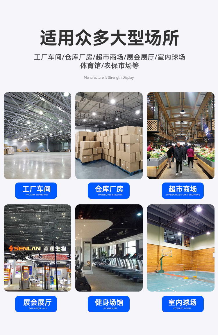Завод, мастерская, склад, супермаркет, спортзал и другое внутреннее освещение.