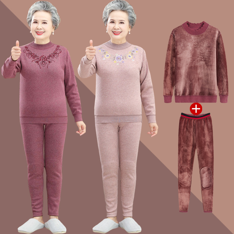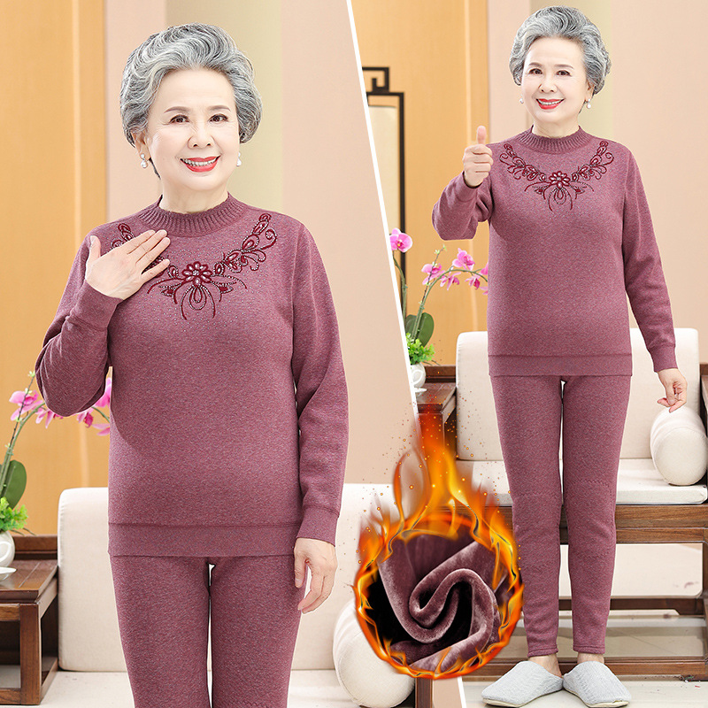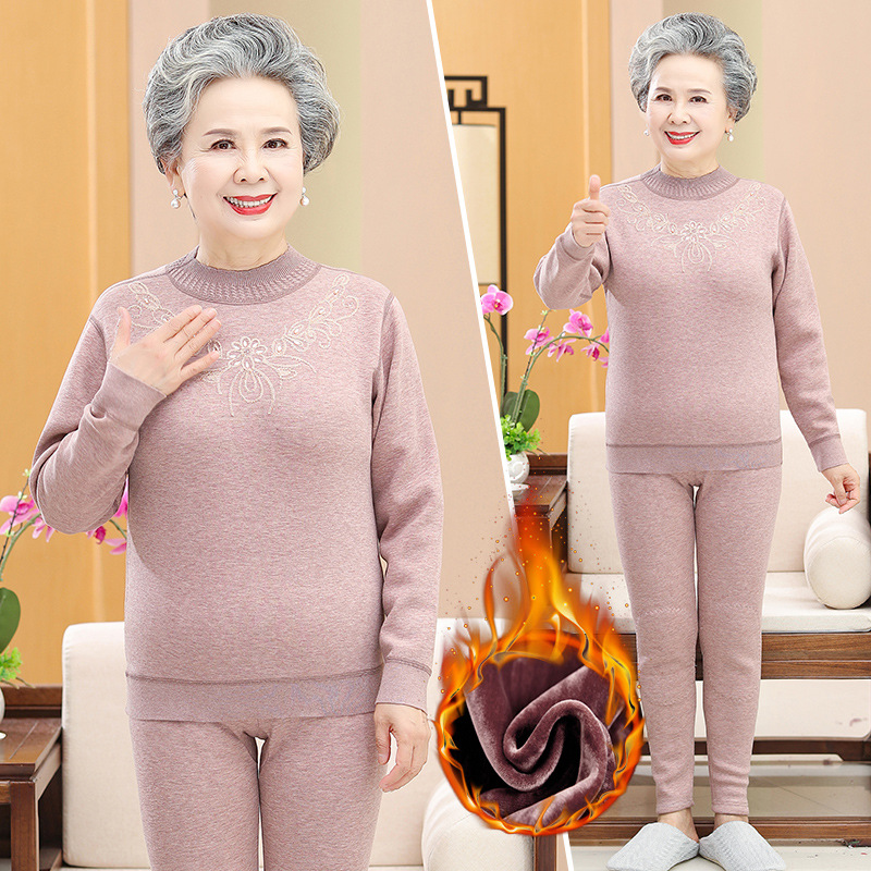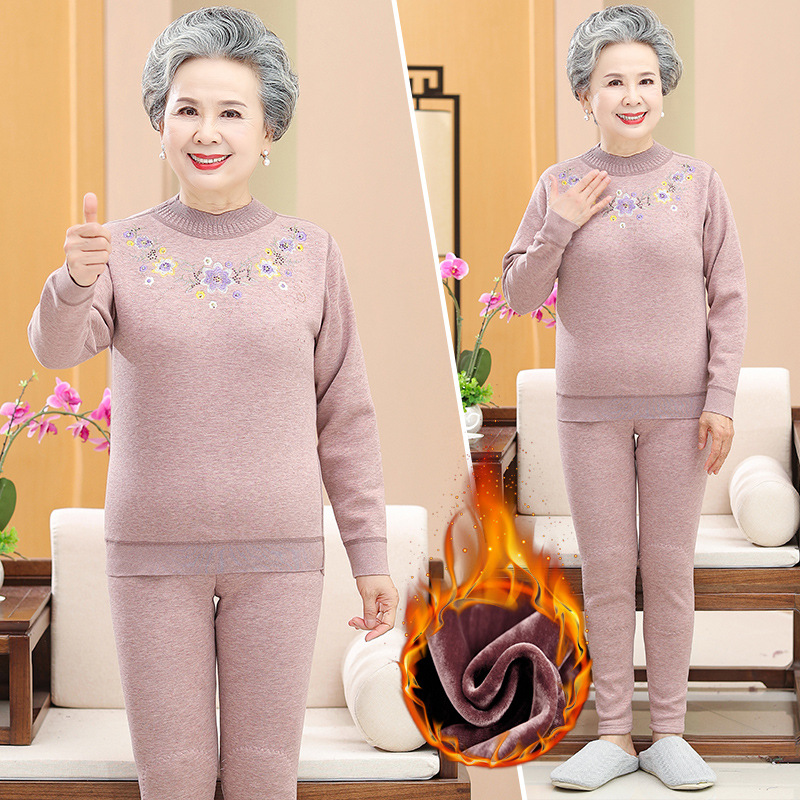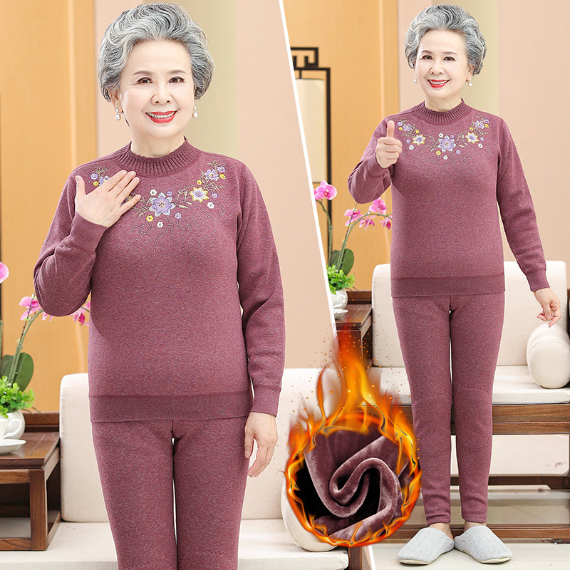 Осенне-зимнее термобелье для людей среднего и пожилого возраста, костюм для бабушки, одежда на флисовой подкладке, утолщенная осенняя одежда, осенние брюки, одежда для мам пожилых людей