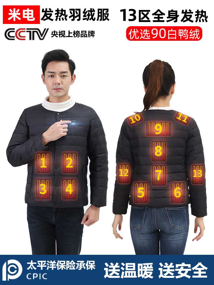 米电发热羽绒服内胆智能温控发热棉服外套USB充电加热衣服男女