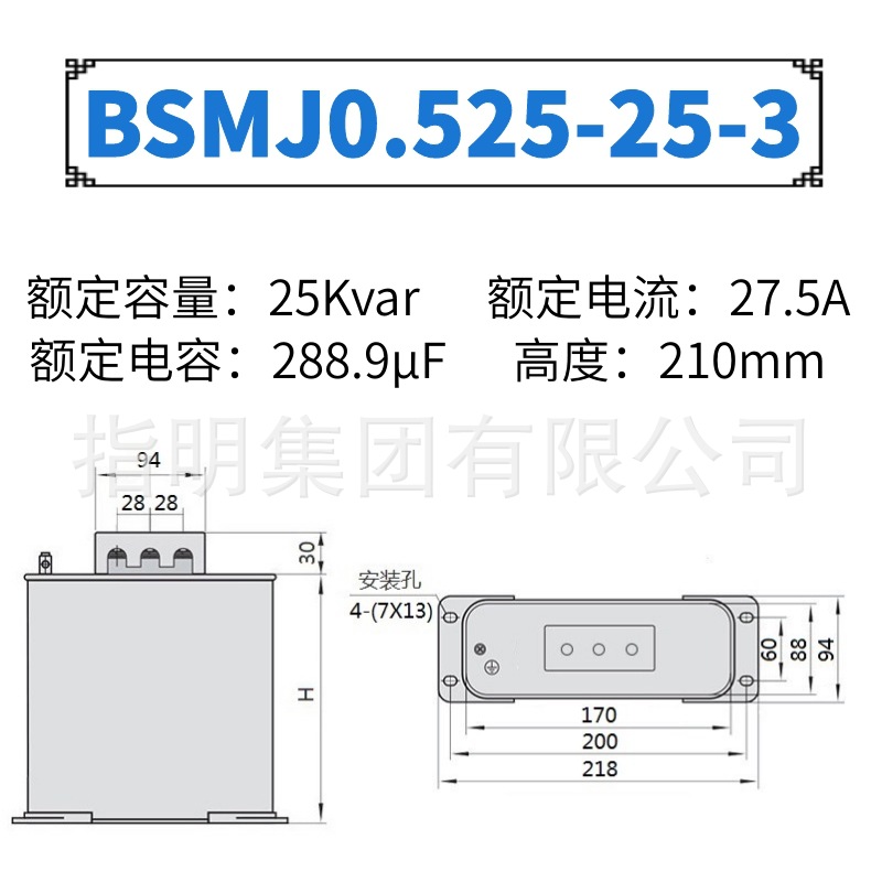 Указать, что низковольтный силовой конденсатор серии BSMJ0.525, трехфазный компенсационный самовосстанавливающийся шунтирующий конденсатор низкого напряжения.