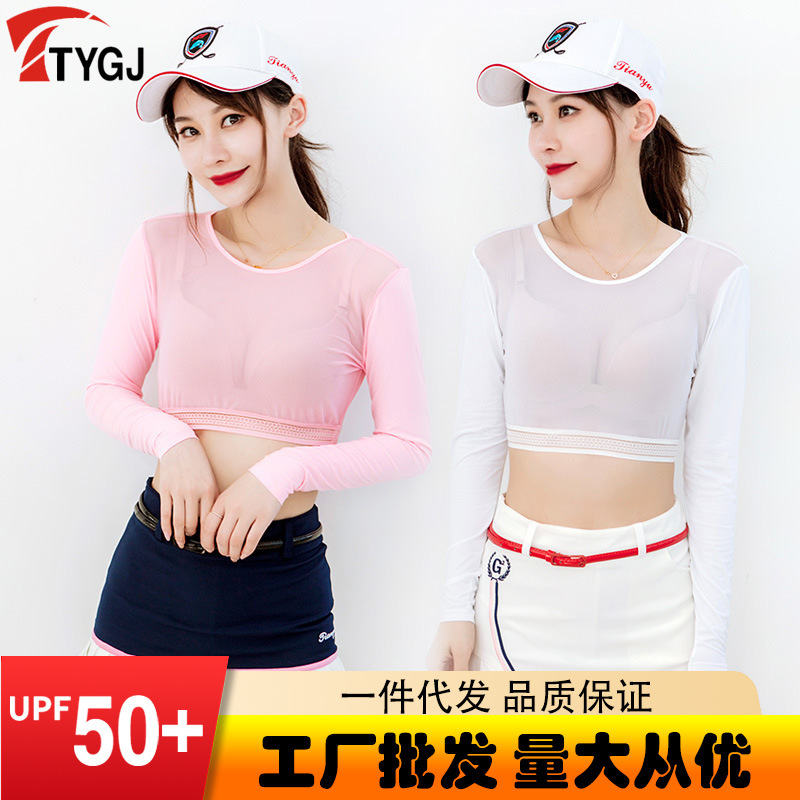 Трансграничные поставки женской одежды для гольфа, летняя солнцезащитная одежда из ледяного шелка, дышащий внутренний слой, тонкие рукава реглан, нижняя рубашка.