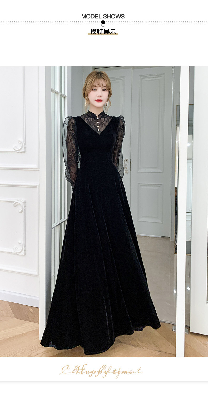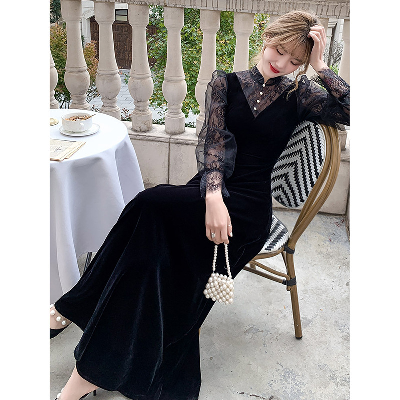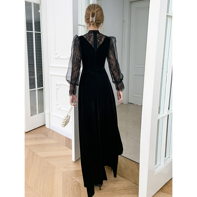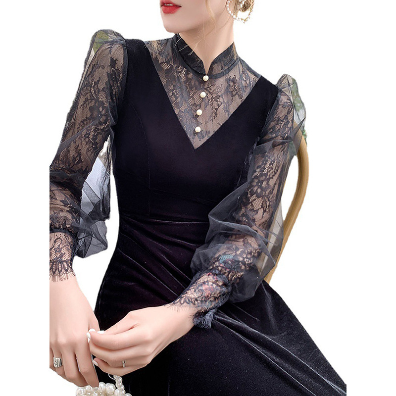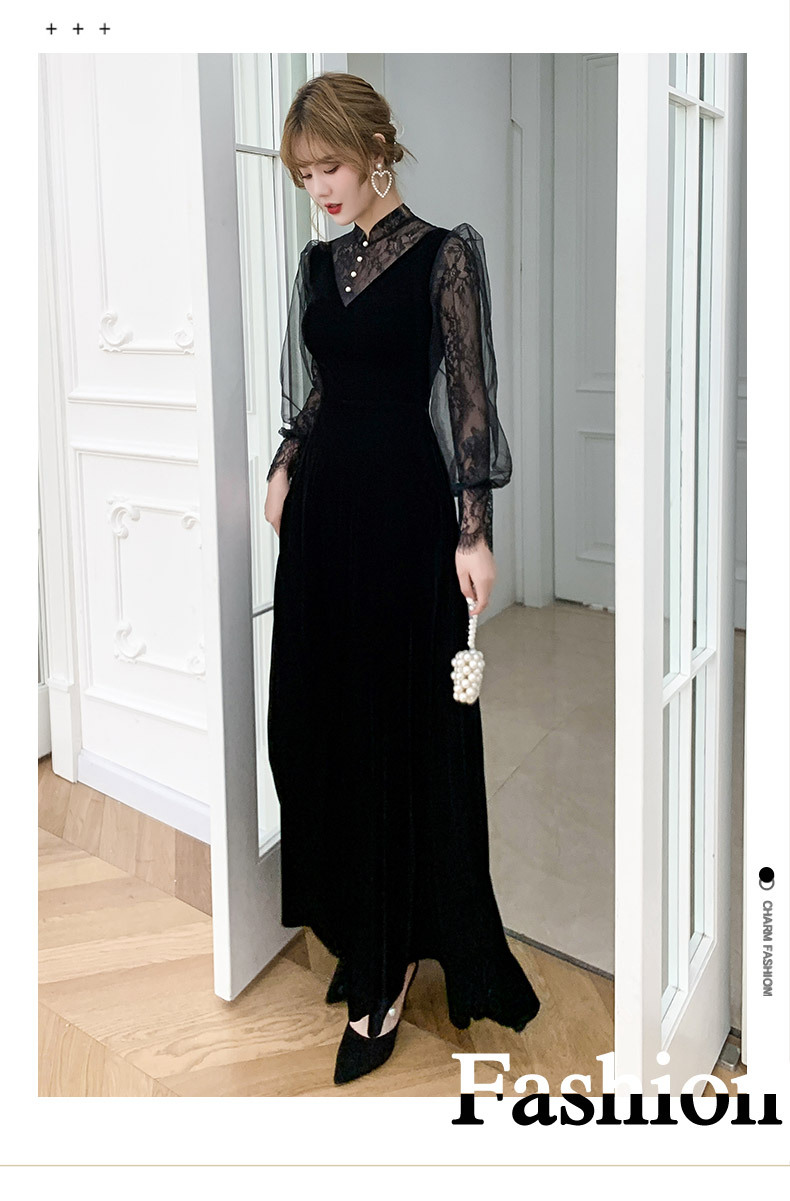 Новое черное вечернее платье в стиле шинуазри с длинным воротником-стойкой, легкое роскошное нишевое кружевное платье с длинными рукавами, которое можно носить на каждый день