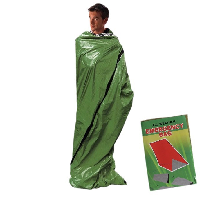 3.在雨天,急救睡袋可用作雨披;可撑开做雨棚。
