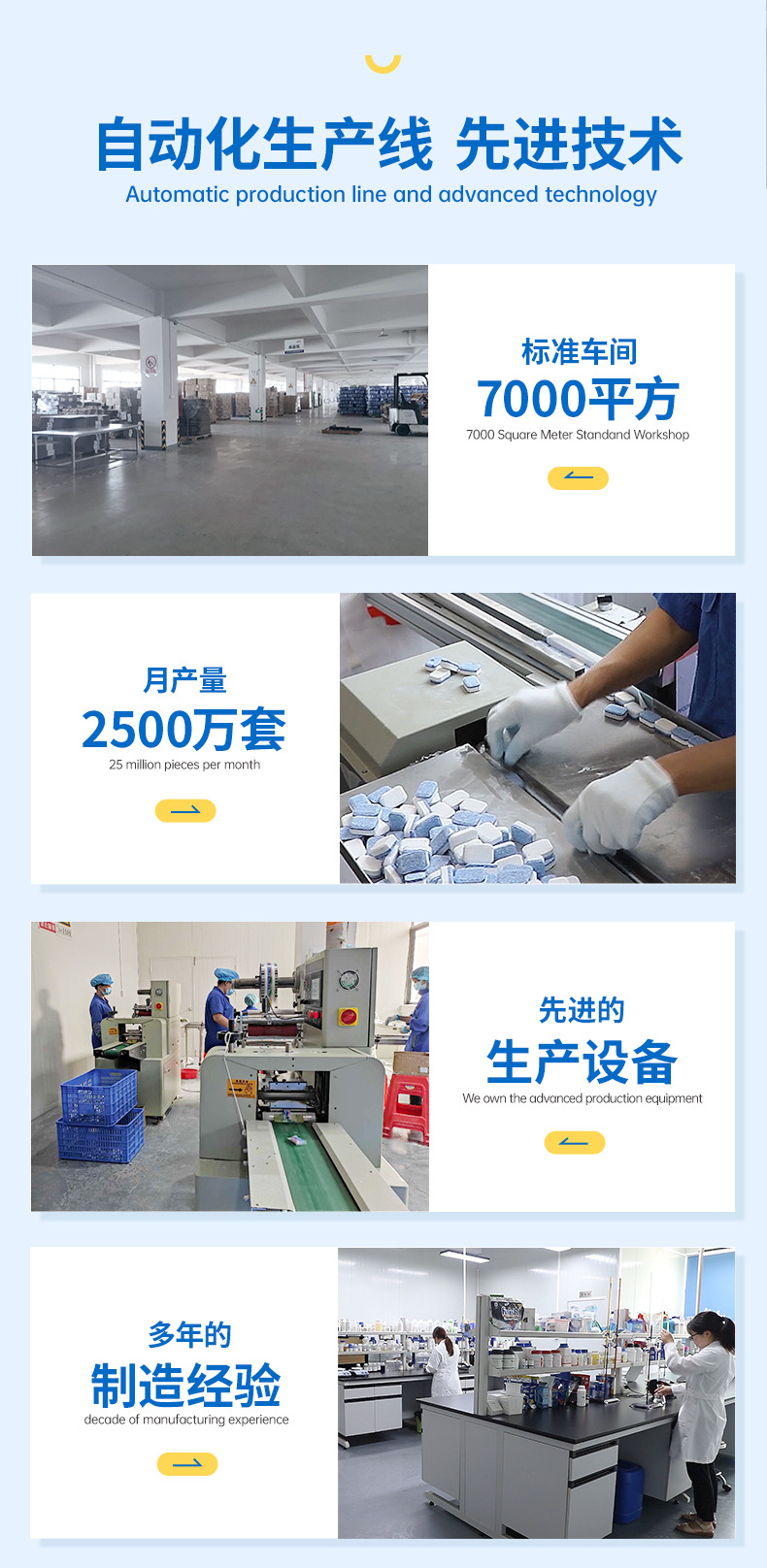 Производитель обрабатывает и производит на заказ многокомпонентные таблетки для посудомоечных машин, чистящие шипучие таблетки, специальные таблетки для посудомоечных машин, моющие средства для внешней торговли.