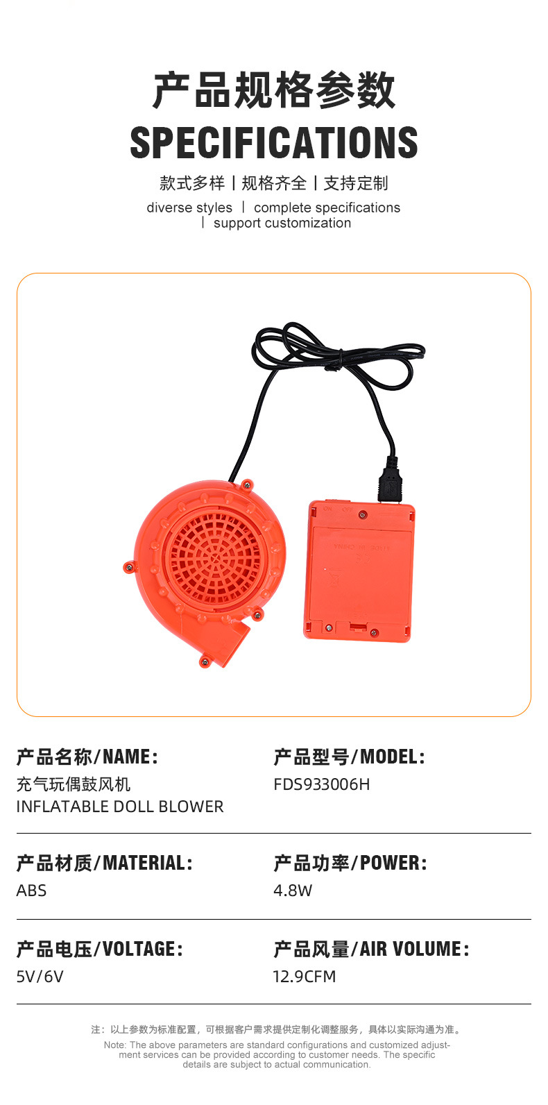 Производитель поставляет надувной вентилятор для кукол, используемый на Хэллоуин, с батарейным блоком 6В.