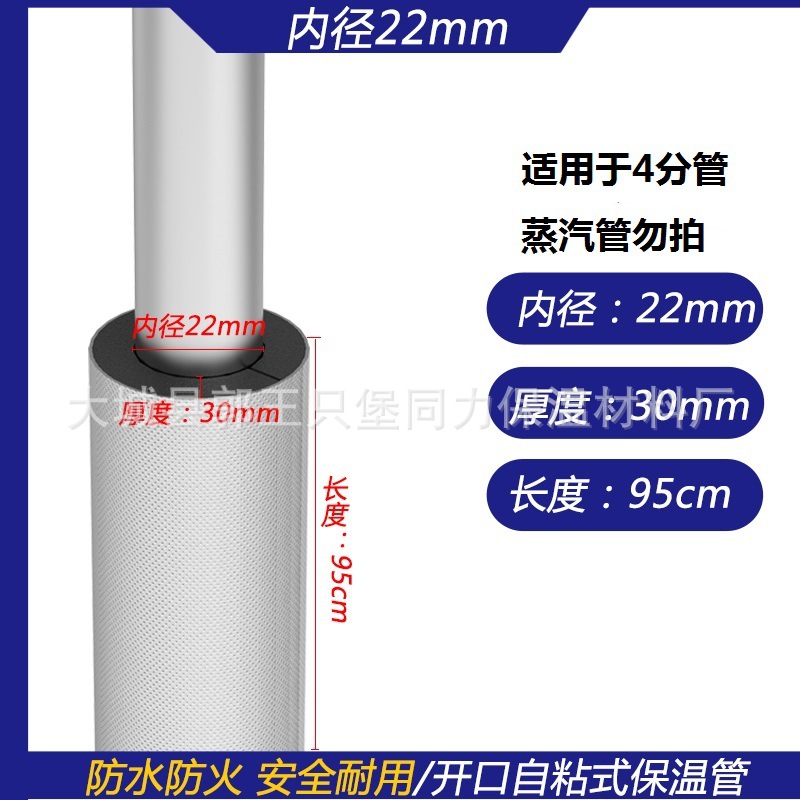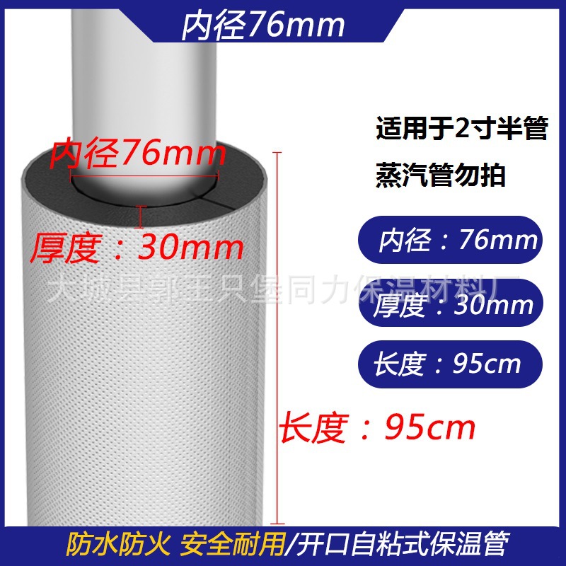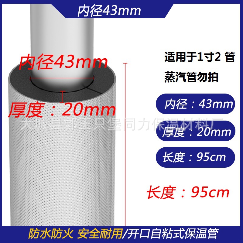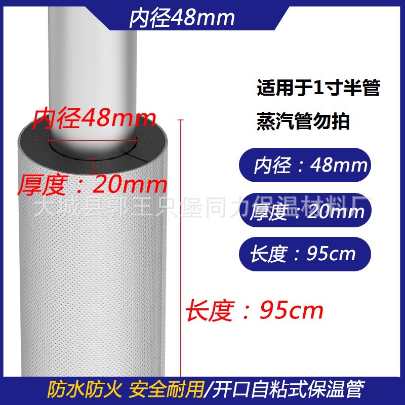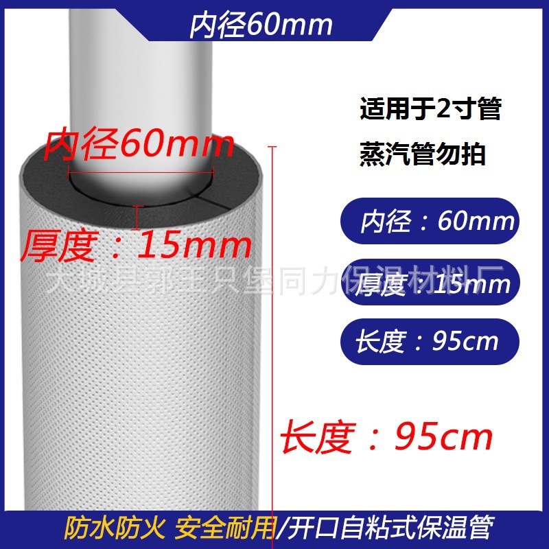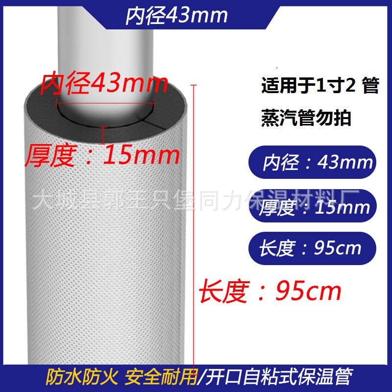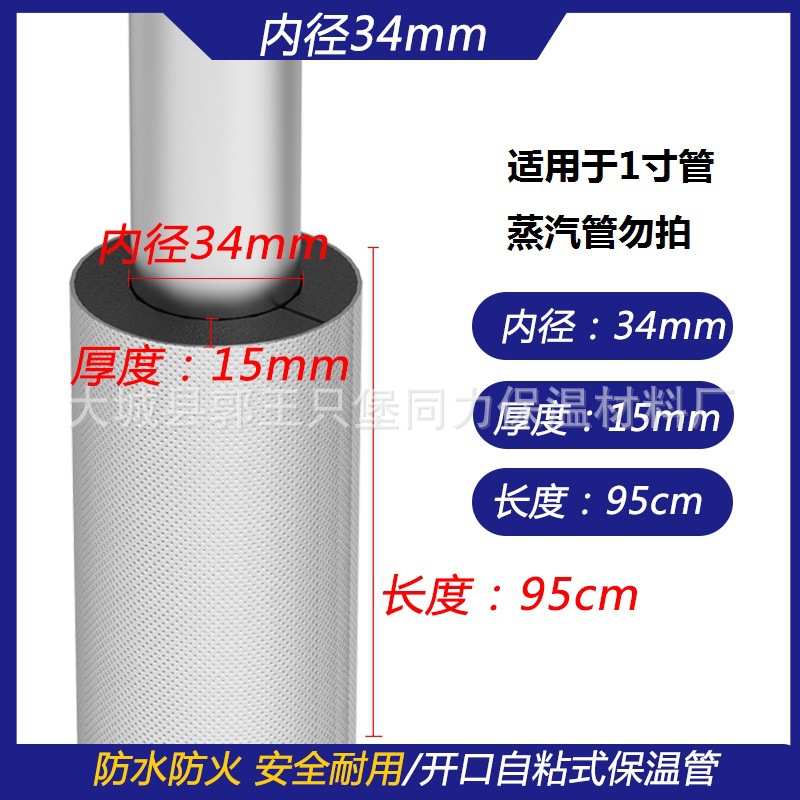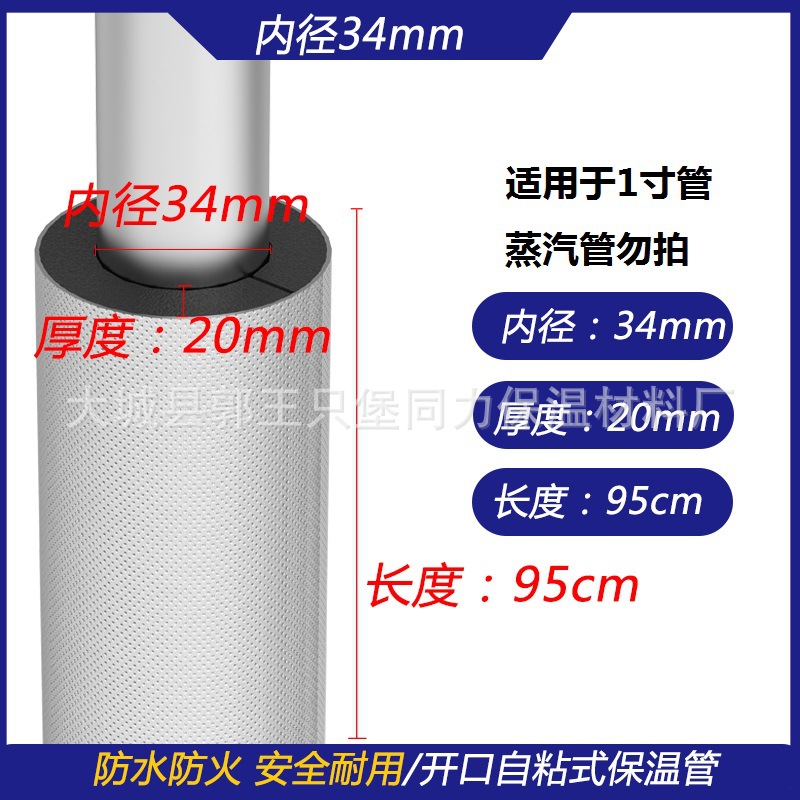产品一根0.95米长,开口自粘。外敷铝箔玻纤布。使用方便