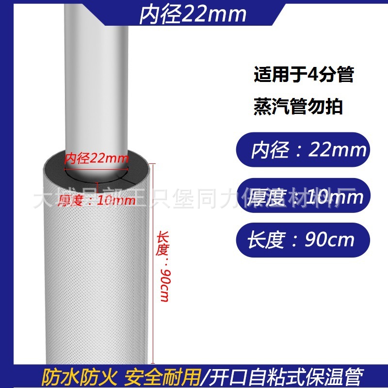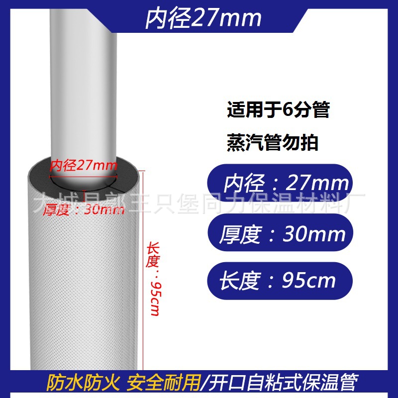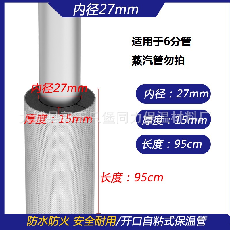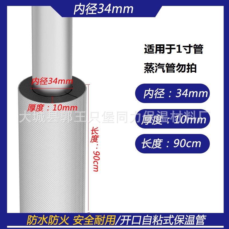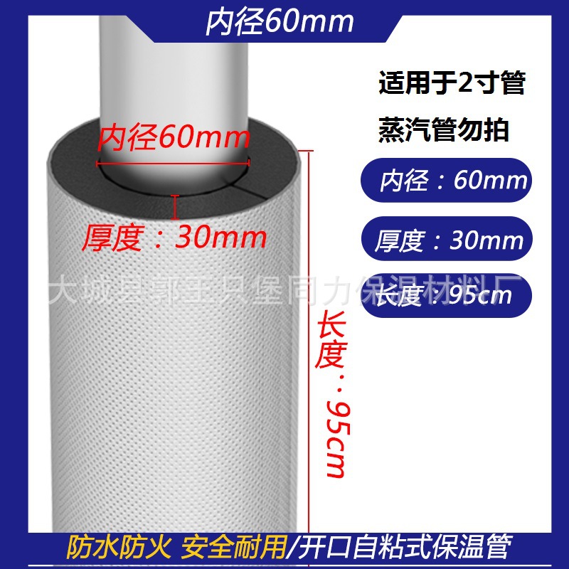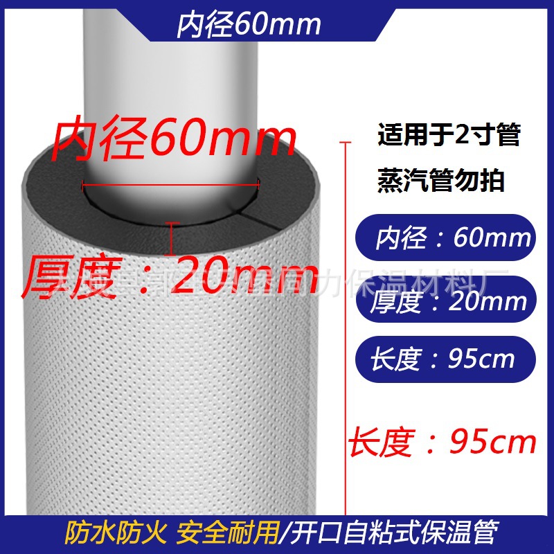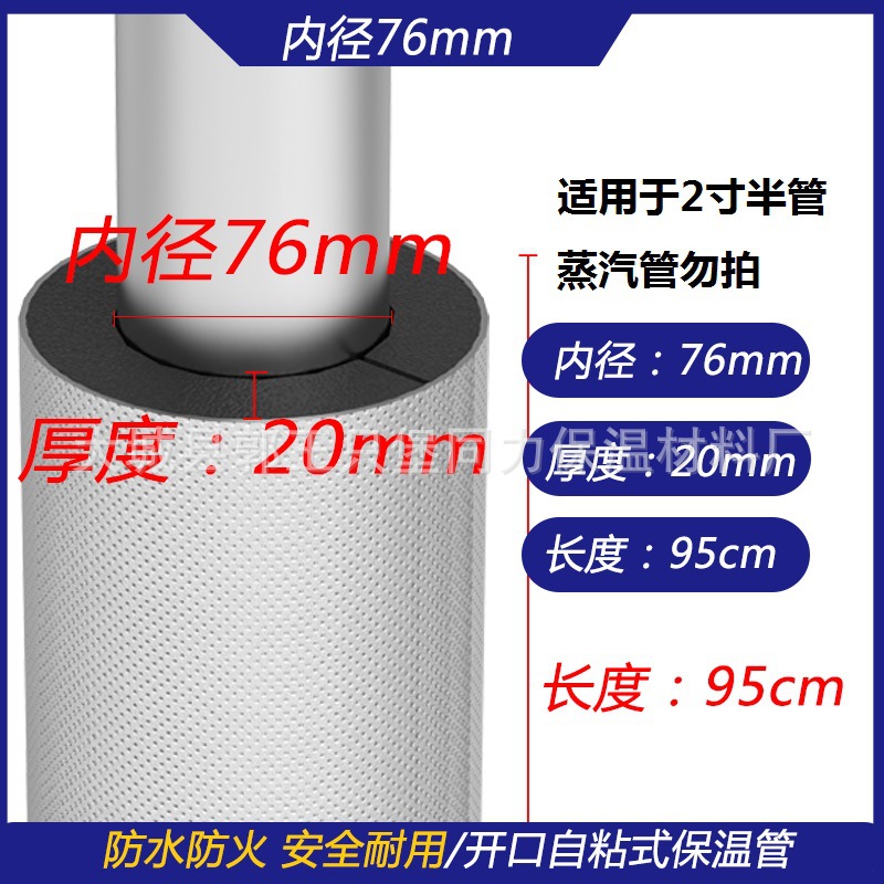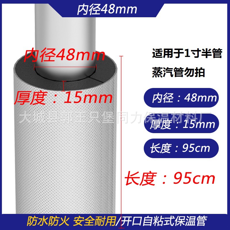 产品一根0.95米长,开口自粘。外敷铝箔玻纤布。使用方便