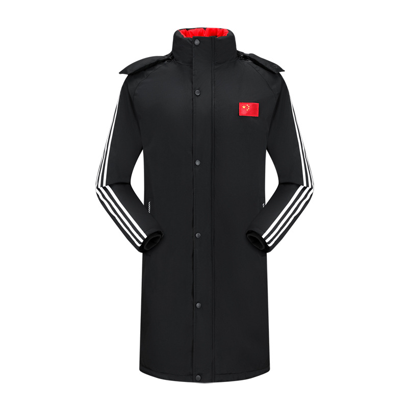 Футбольная зимняя тренировочная длинная спортивная куртка для мальчиков и девочек, утолщенная куртка с хлопковой подкладкой на флисовой подкладке, студенческое зимнее пальто оптом