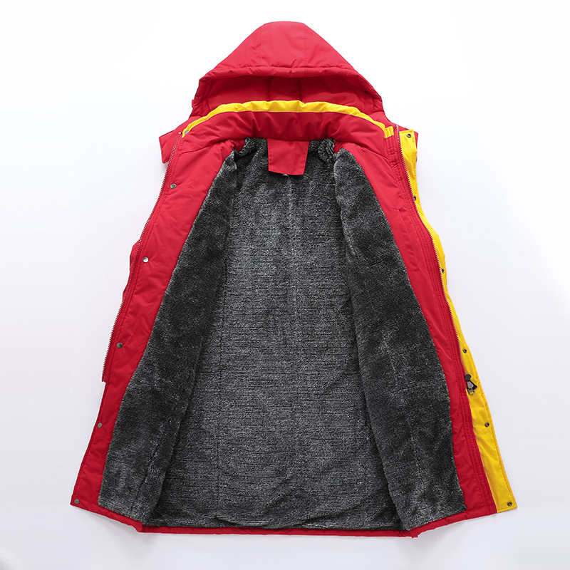 注意:该款为中长款棉大衣,加绒里布,正常穿着差不多到膝盖的。加棉加厚保暖,内里填充羽绒棉