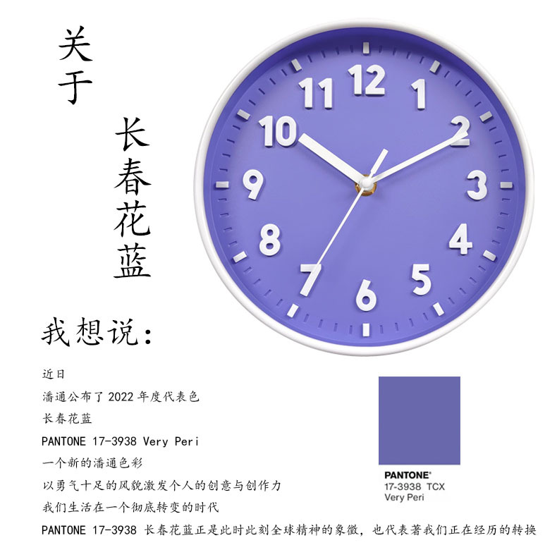 [2022 Pantone Color Card Fashion Color] Барвинок Синий 8-дюймовые бесшумные настенные часы Простые домашние часы для гостиной
