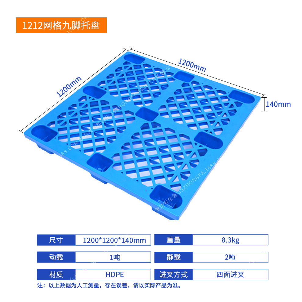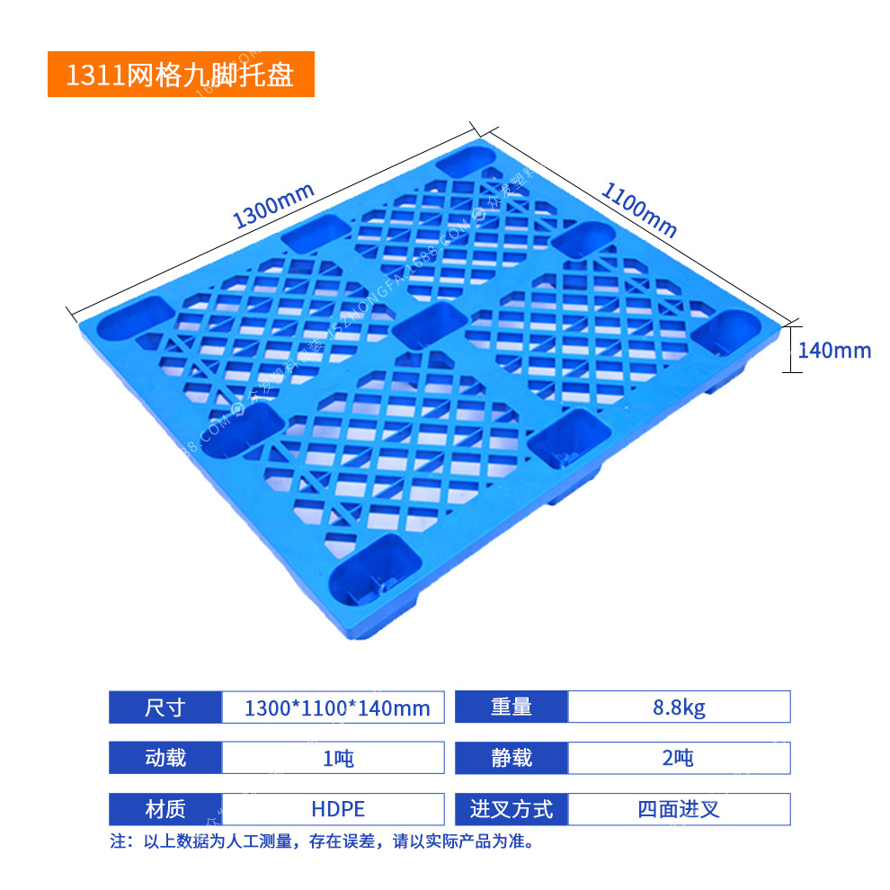 1311 решетчатый девятиопорный поддон (1300*1100*140 мм); 1212 решетчатый девятиопорный поддон (1200*1200*140 мм); 1210 легкая решетчатая паллета с девятью ножками (1200*1000*145 мм); 1210 сетка девятиопорный поддон (1200*1000*145 мм); 1210 прочный сетчатый поддон с девятью ножками (1200*1000*140 мм); 1208 решетчатый паллет с девятью ножками (1200*800*140 мм); 1111 решетчатый девятиопорный поддон (1100*1100*140 мм); 1109 решетчатый девятиопорный поддон (1100*900*140 мм); 1010 решетчатый девятиопорный поддон (1000*1000*140 мм); 1008 решетчатый поддон с девятью ножками (1000*800*140 мм)