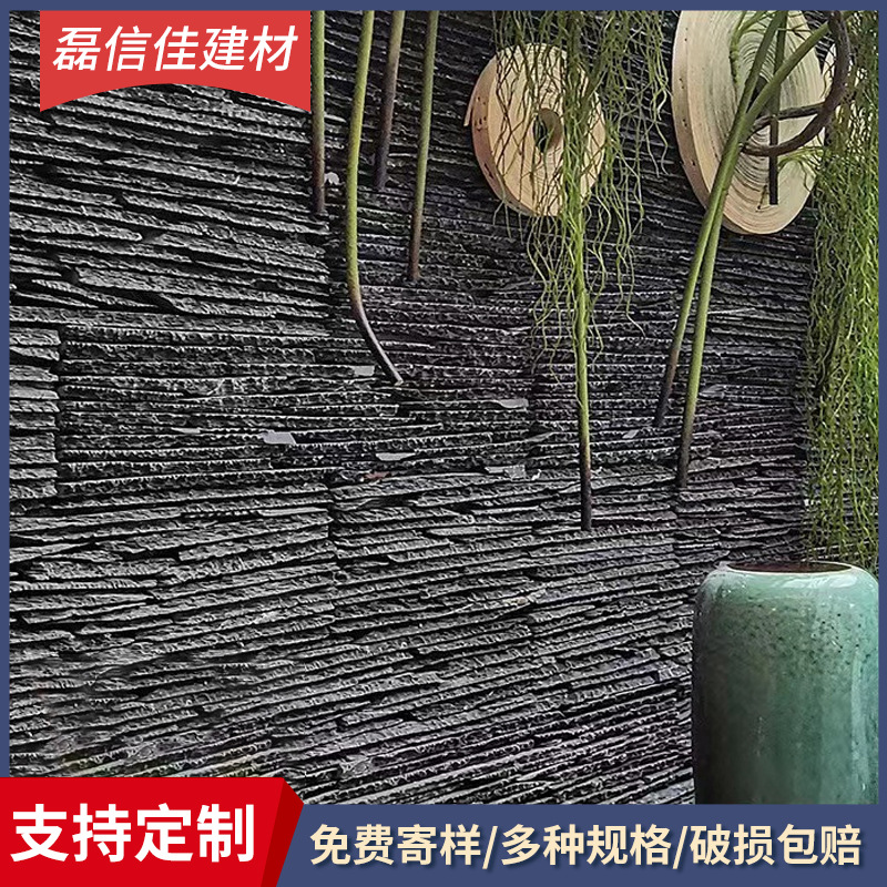 Натуральный черный бег камень фон стена балкон водная занавеска вилла бассейн Сад Балкон крытый и открытый культурный каменный кирпич