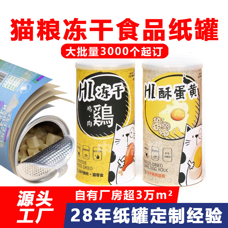 Индивидуальные бумажные банки для корма для кошек, корма для собак, сублимированных закусок, влагонепроницаемые, герметичные, легкооткрываемые композитные банки, упаковка для корма из бумаги