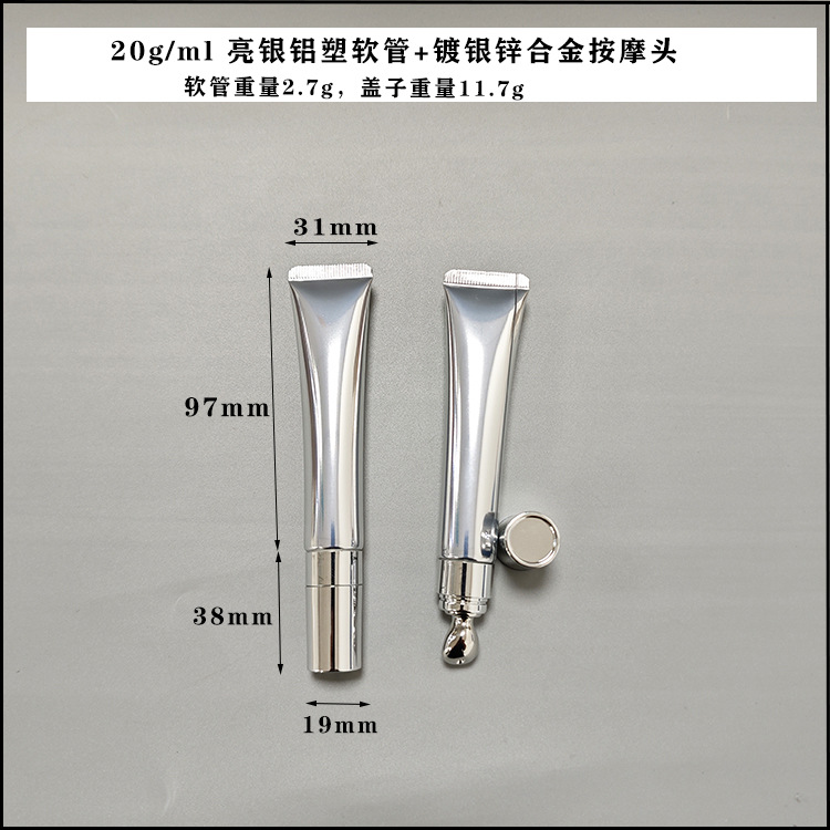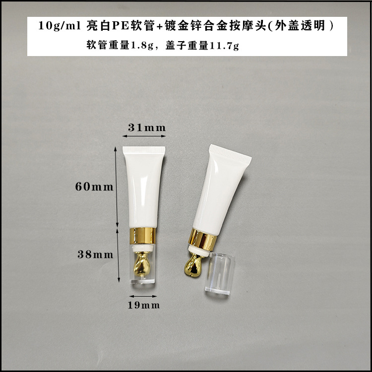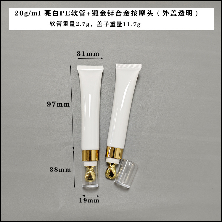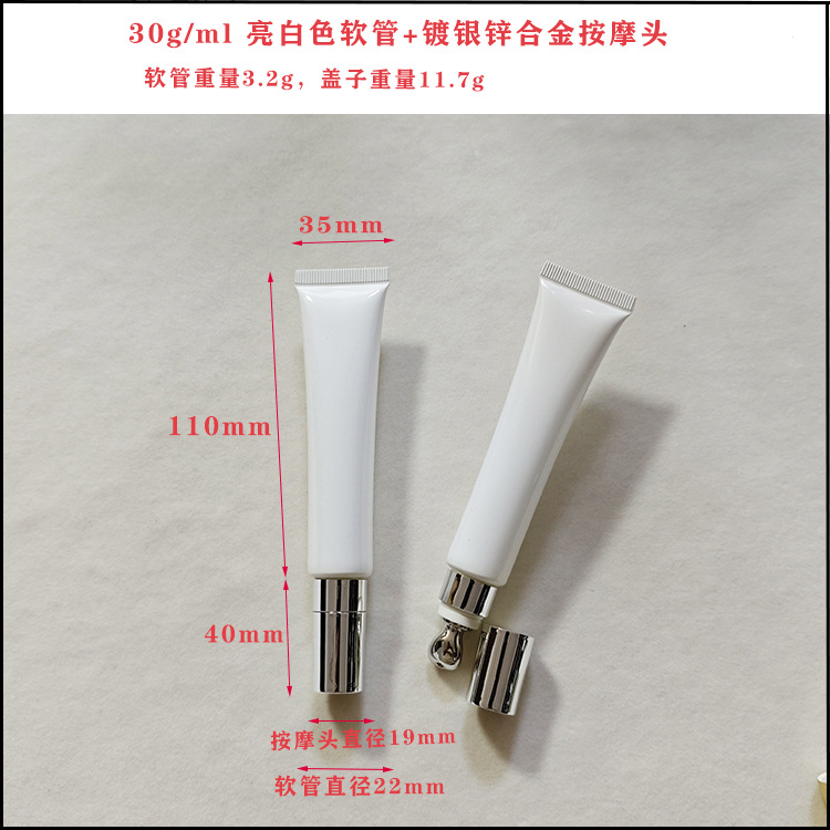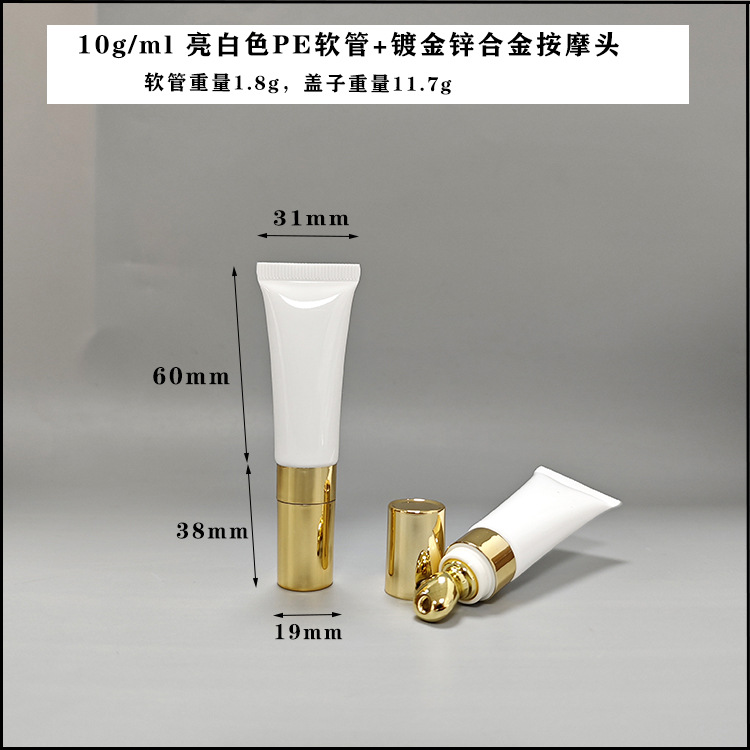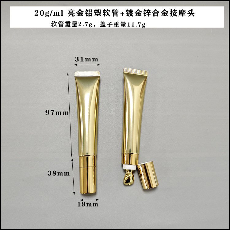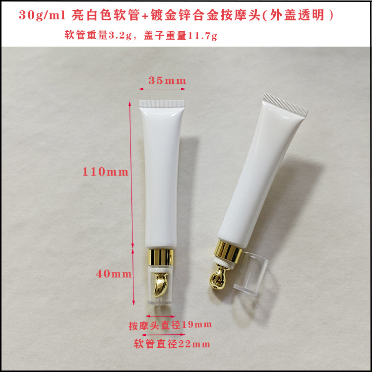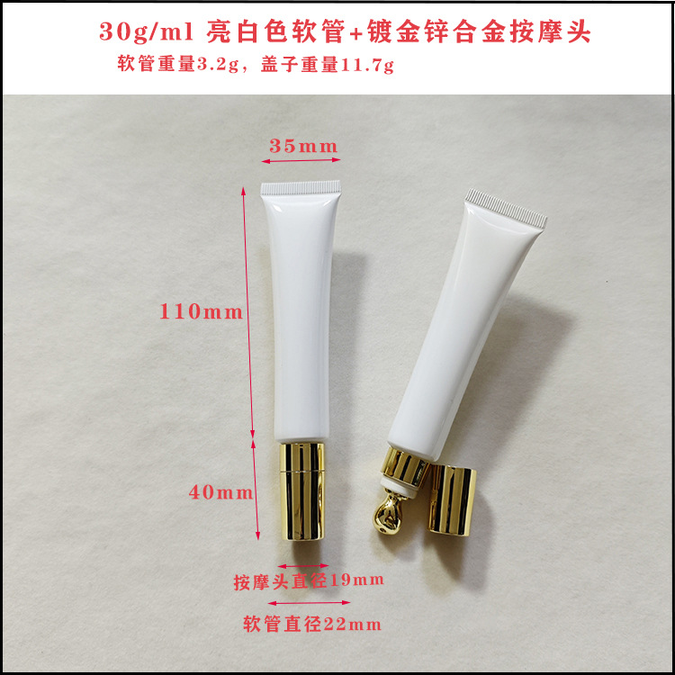 Флакон для косметики 10 мл, 15 мл, 20 г, 30 мл, крем для глаз, массажная головка из сплава, белый, золотой, серебряный, алюминий, пластиковая туба