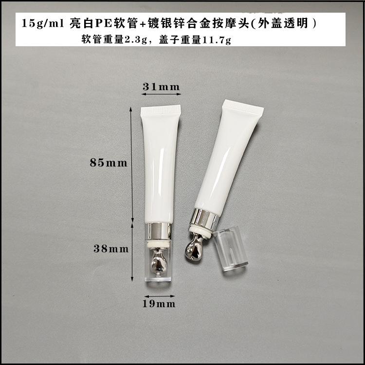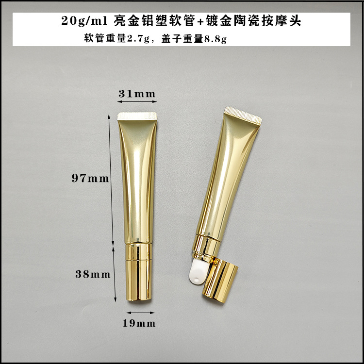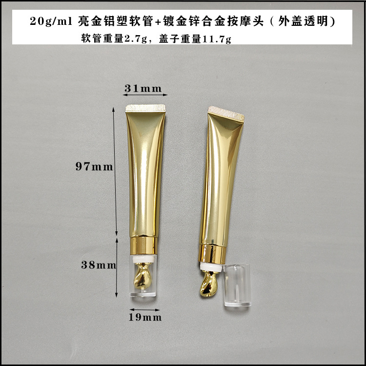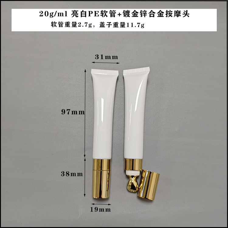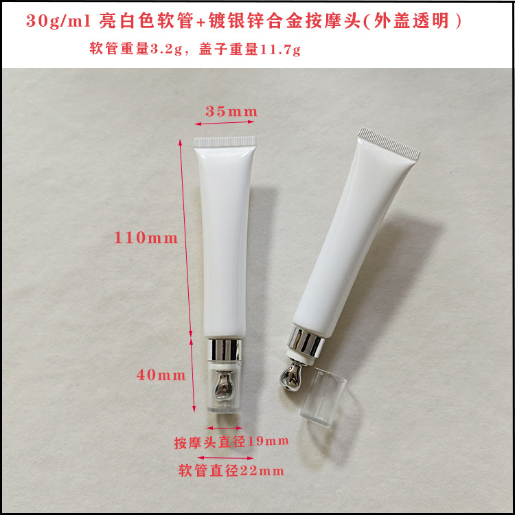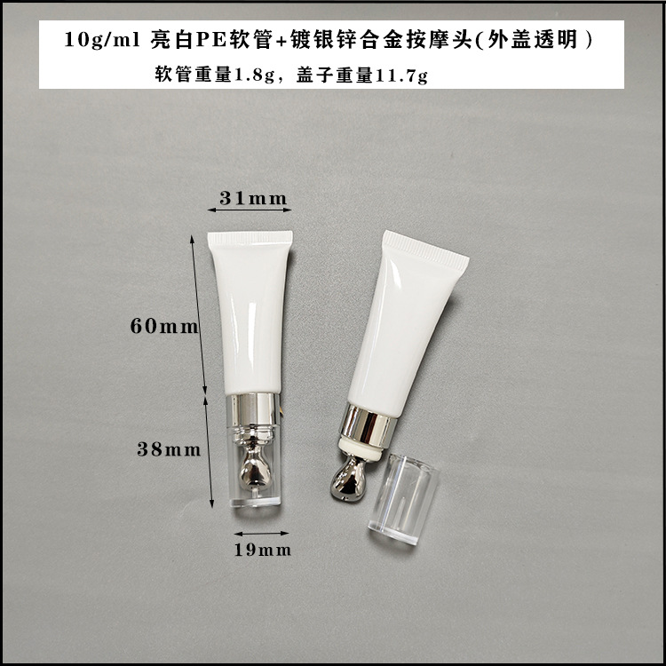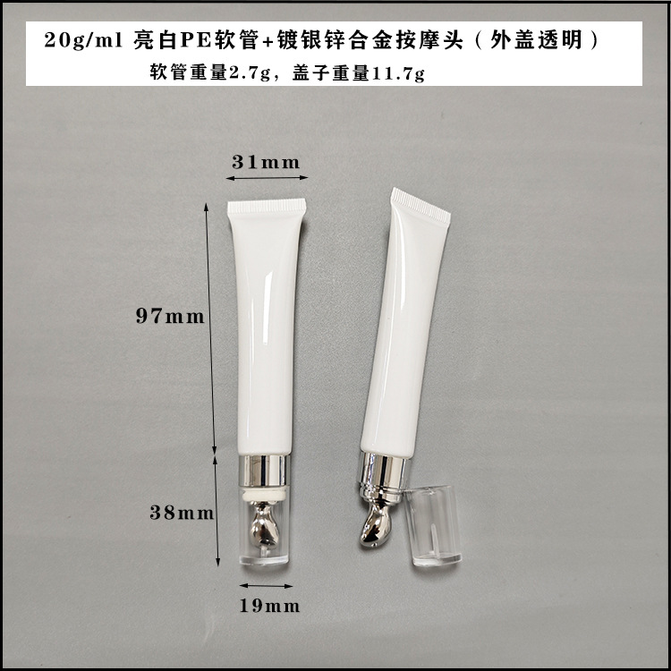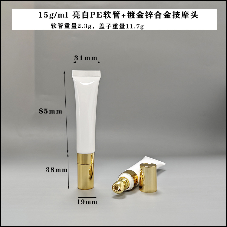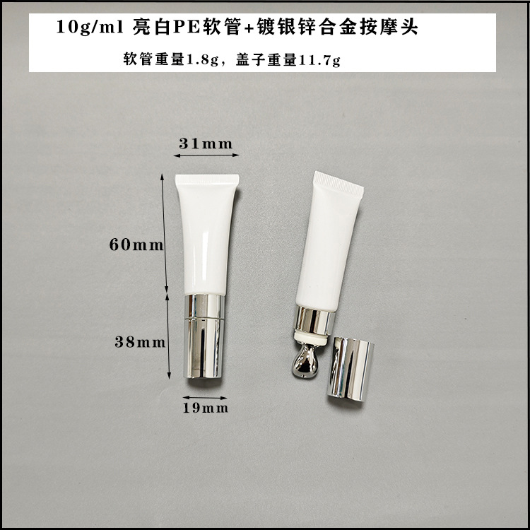 Флакон для косметики 10 мл, 15 мл, 20 г, 30 мл, крем для глаз, массажная головка из сплава, белый, золотой, серебряный, алюминий, пластиковая туба
