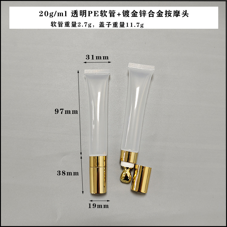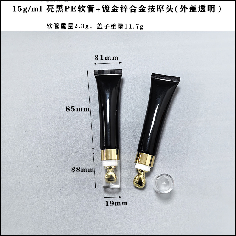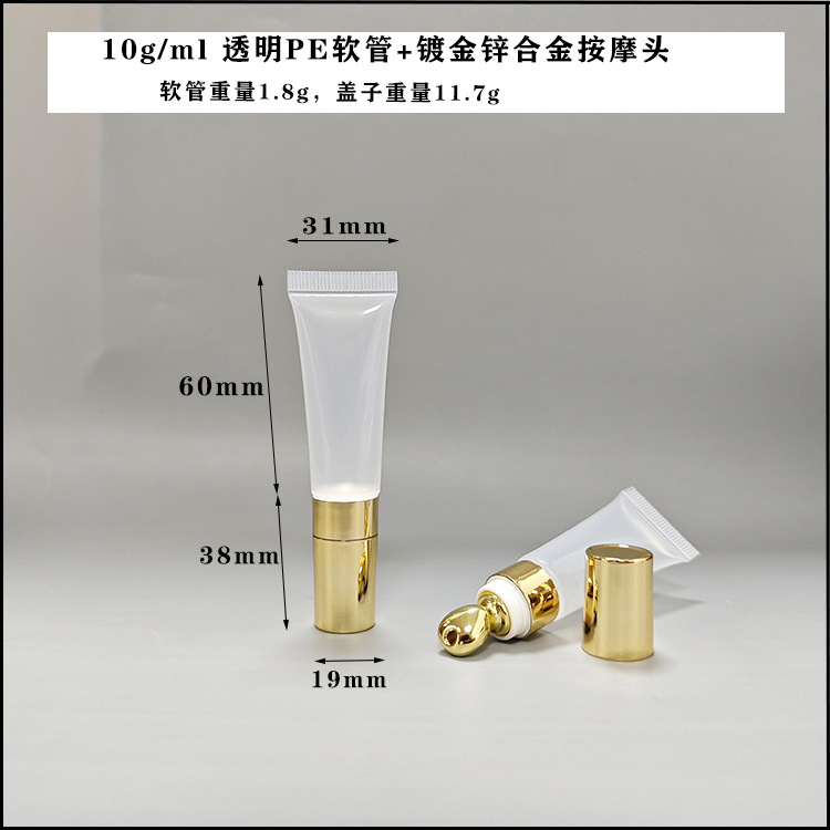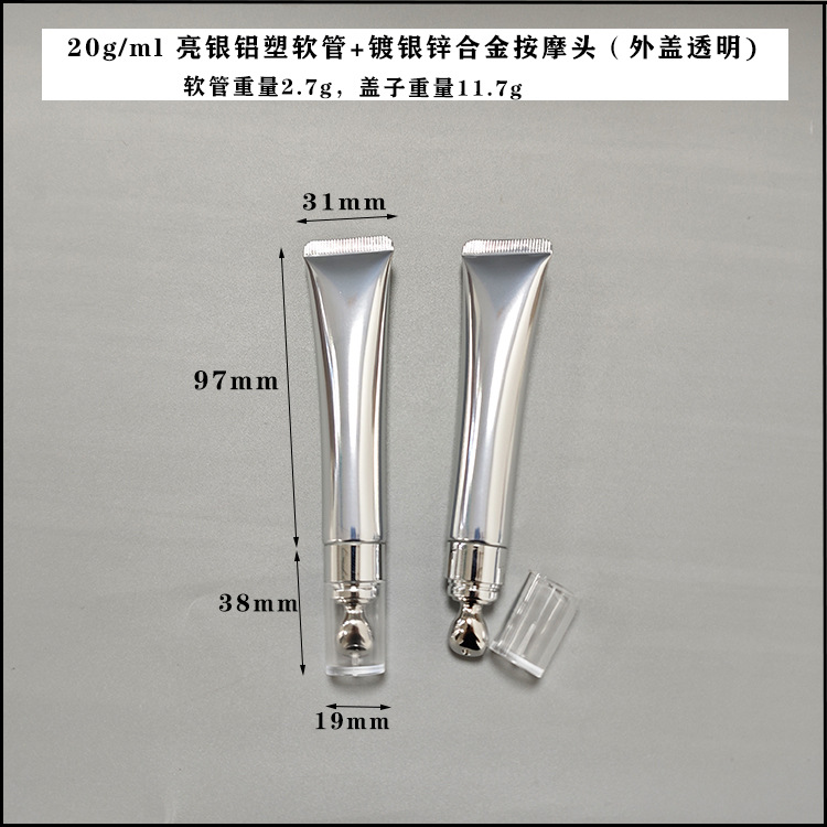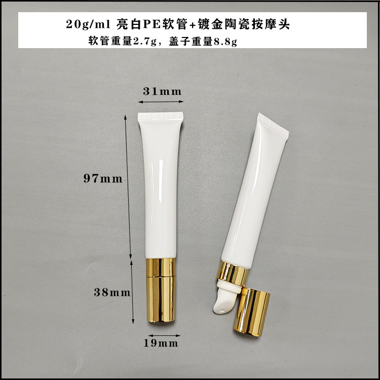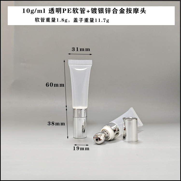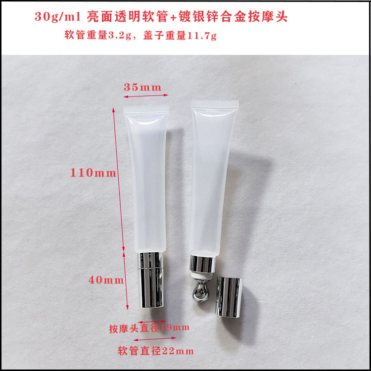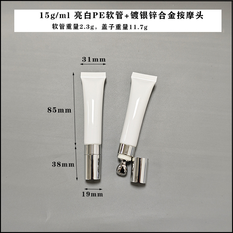 Флакон для косметики 10 мл, 15 мл, 20 г, 30 мл, крем для глаз, массажная головка из сплава, белый, золотой, серебряный, алюминий, пластиковая туба