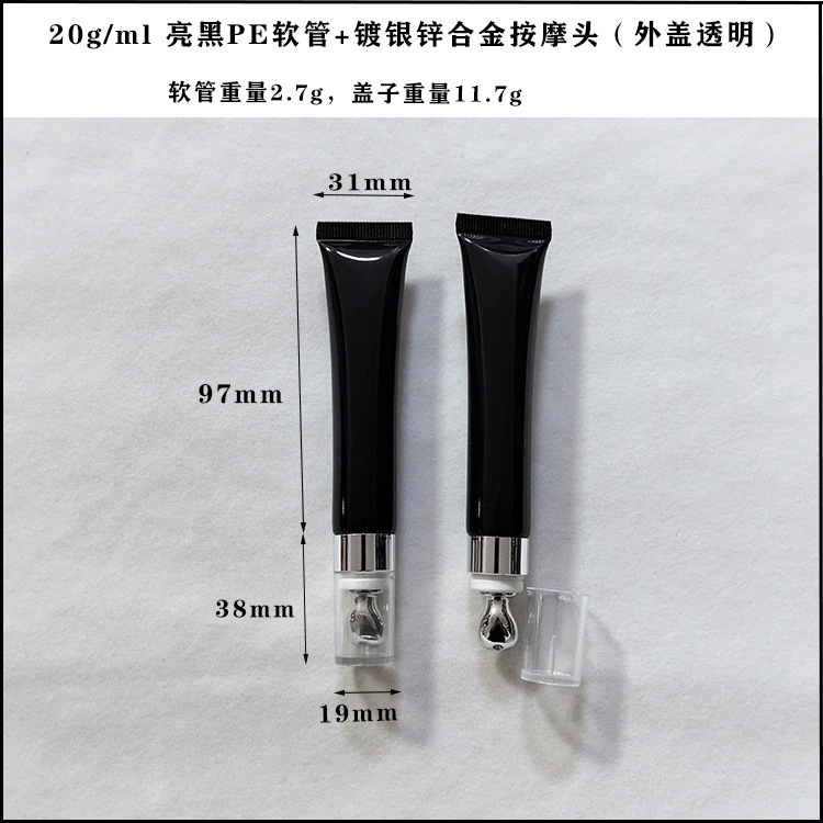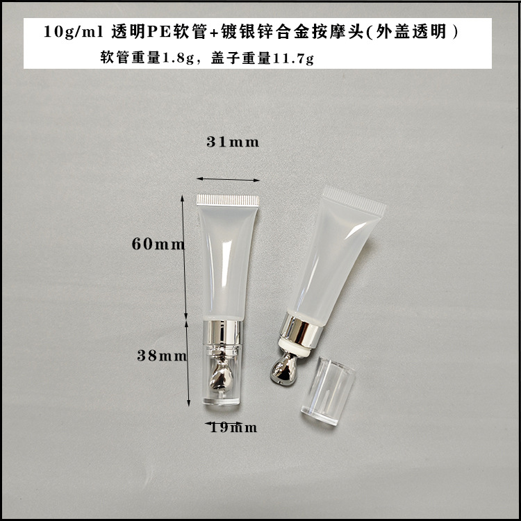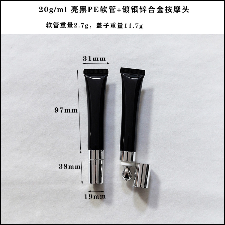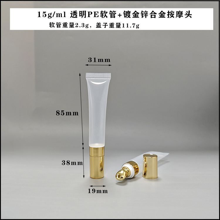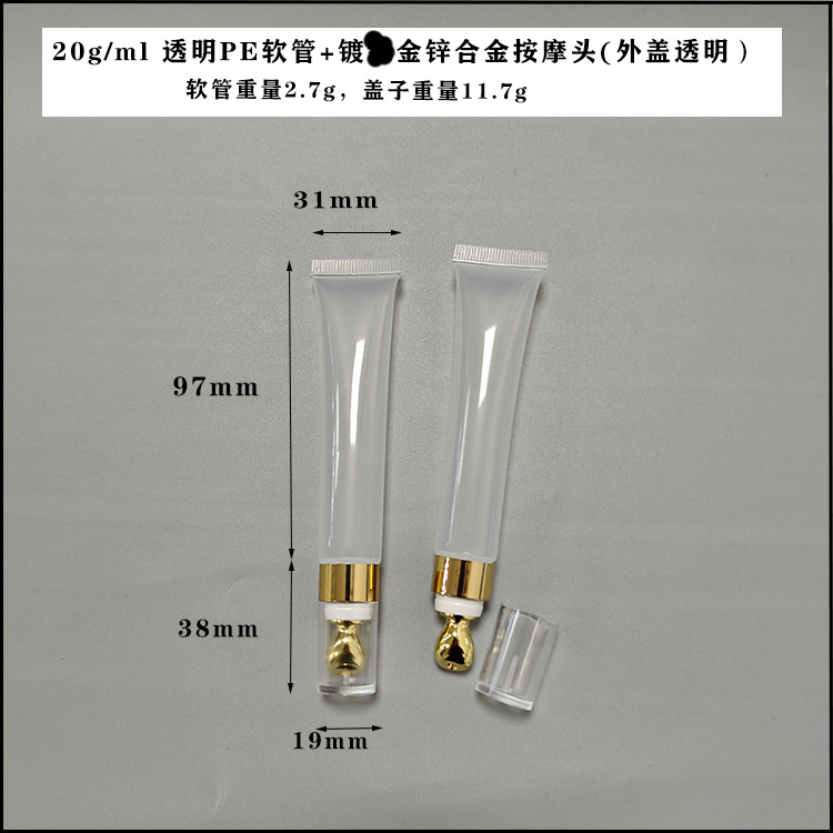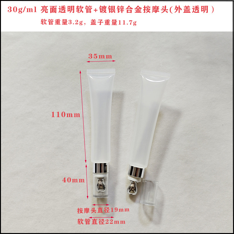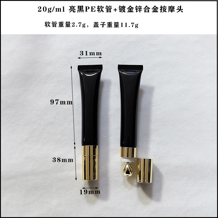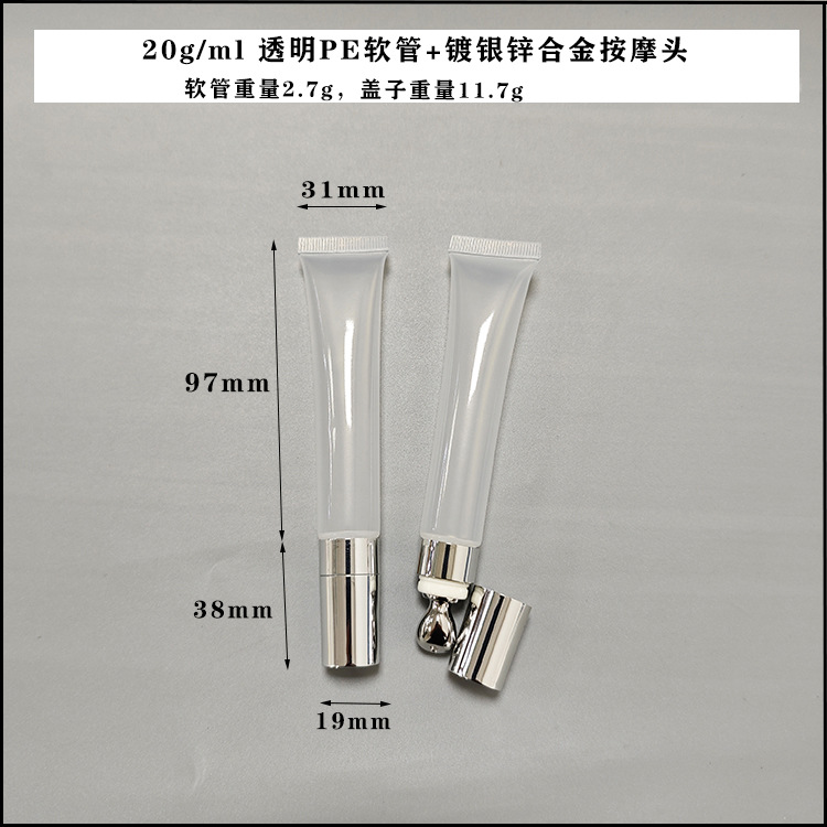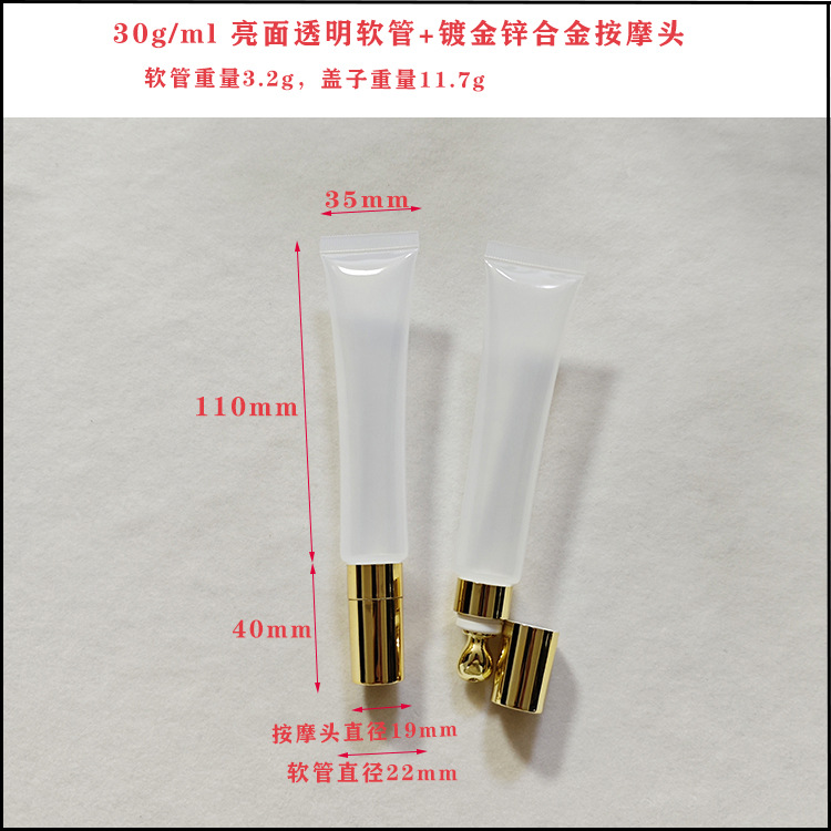 Флакон для косметики 10 мл, 15 мл, 20 г, 30 мл, крем для глаз, массажная головка из сплава, белый, золотой, серебряный, алюминий, пластиковая туба